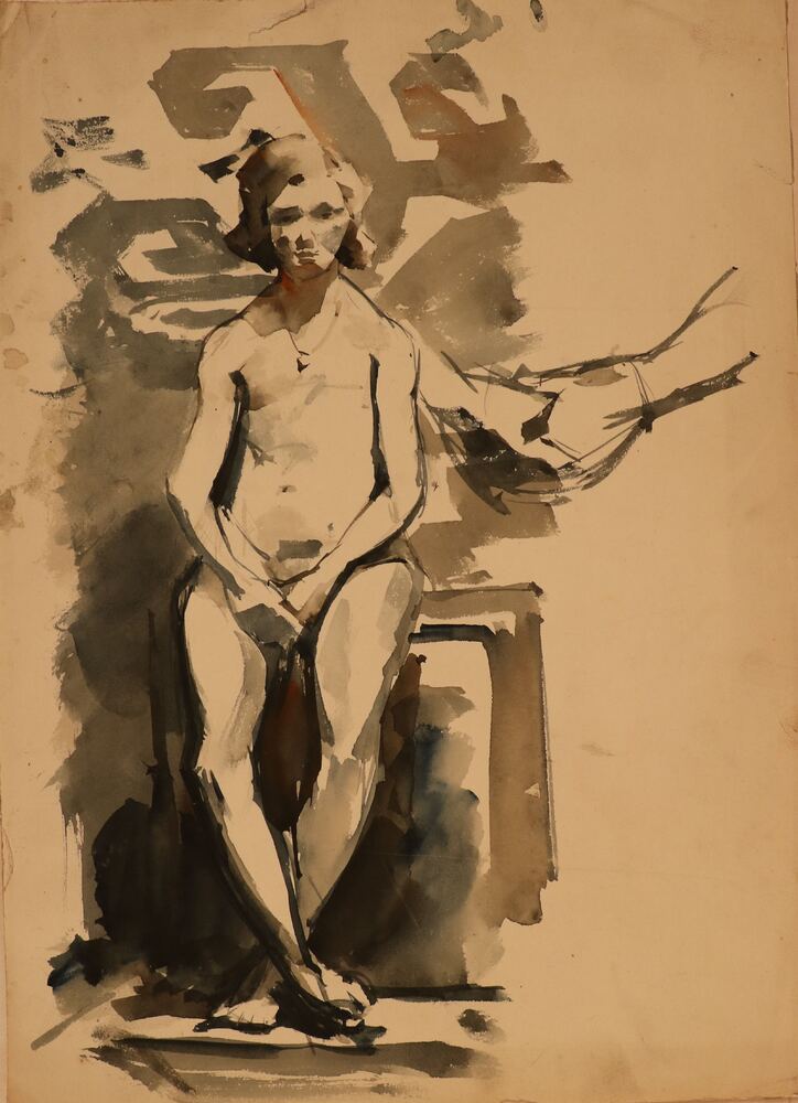 Zittend vrouwelijk naakt en studies