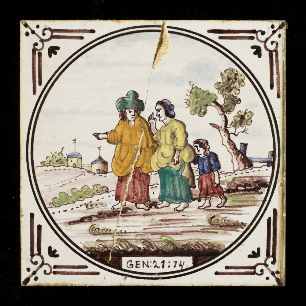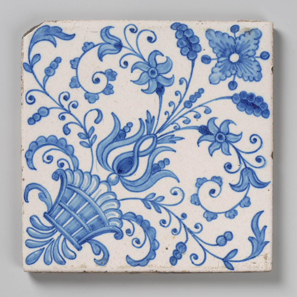 tegel van aardewerk met tinglazuur, voorstellende: o...
