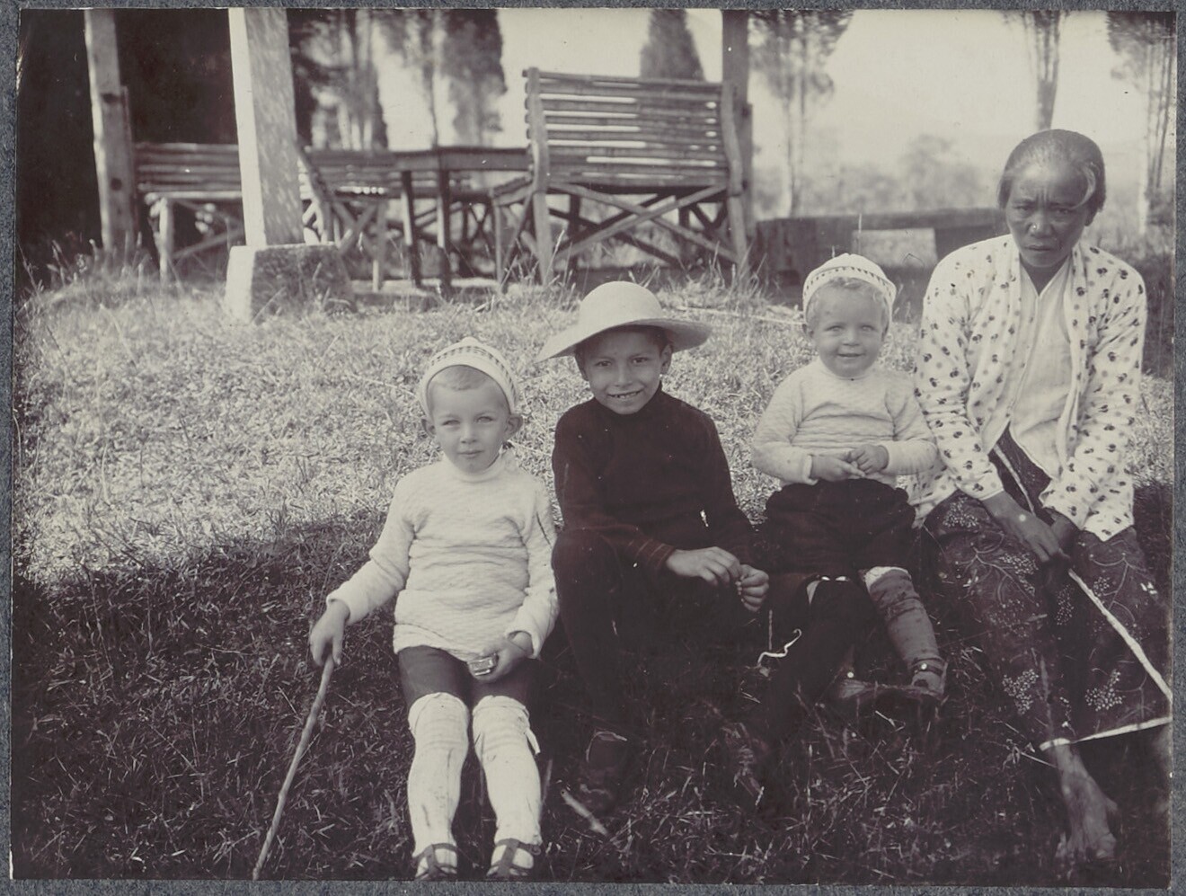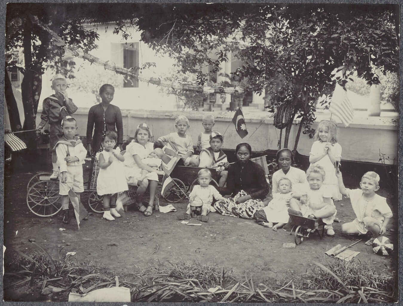 Groepsportret met kinderen en hun verzorgsters tijde...