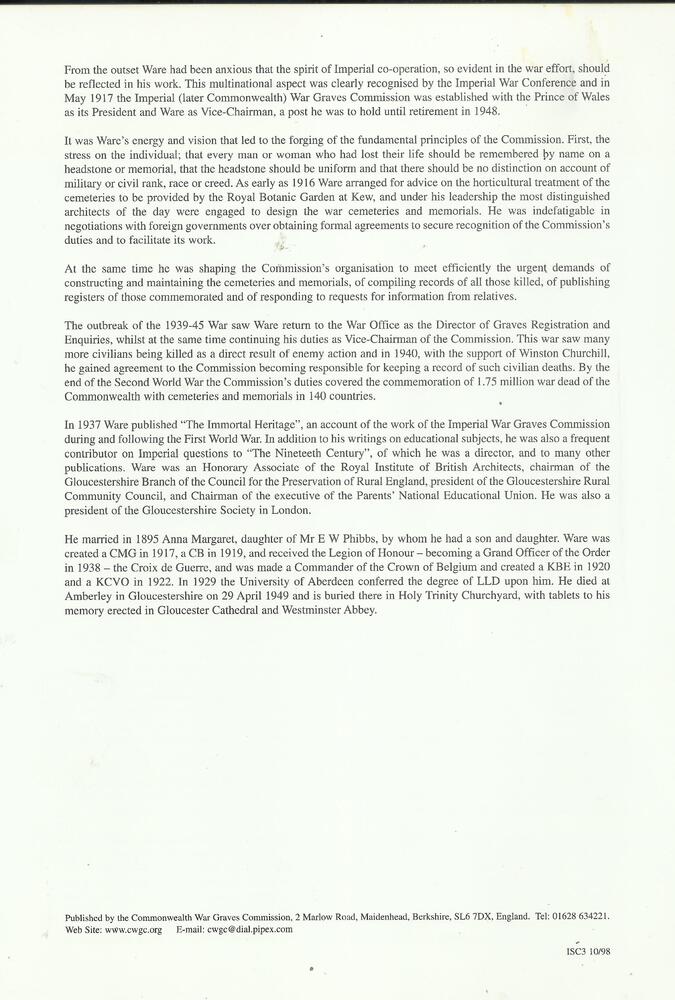 Commonwealth War Graves Commission Information Sheet.