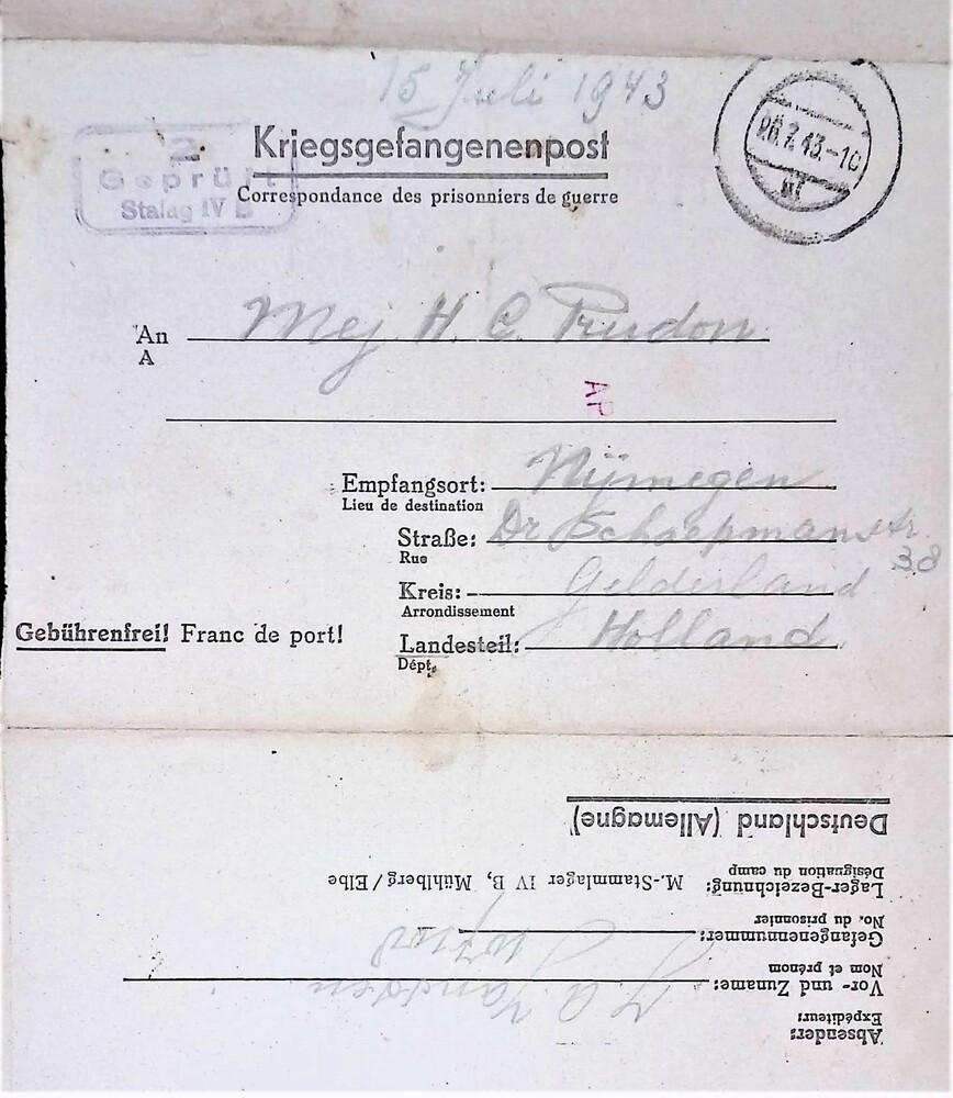 Brief voor Riky Prudon te Nijmegen.