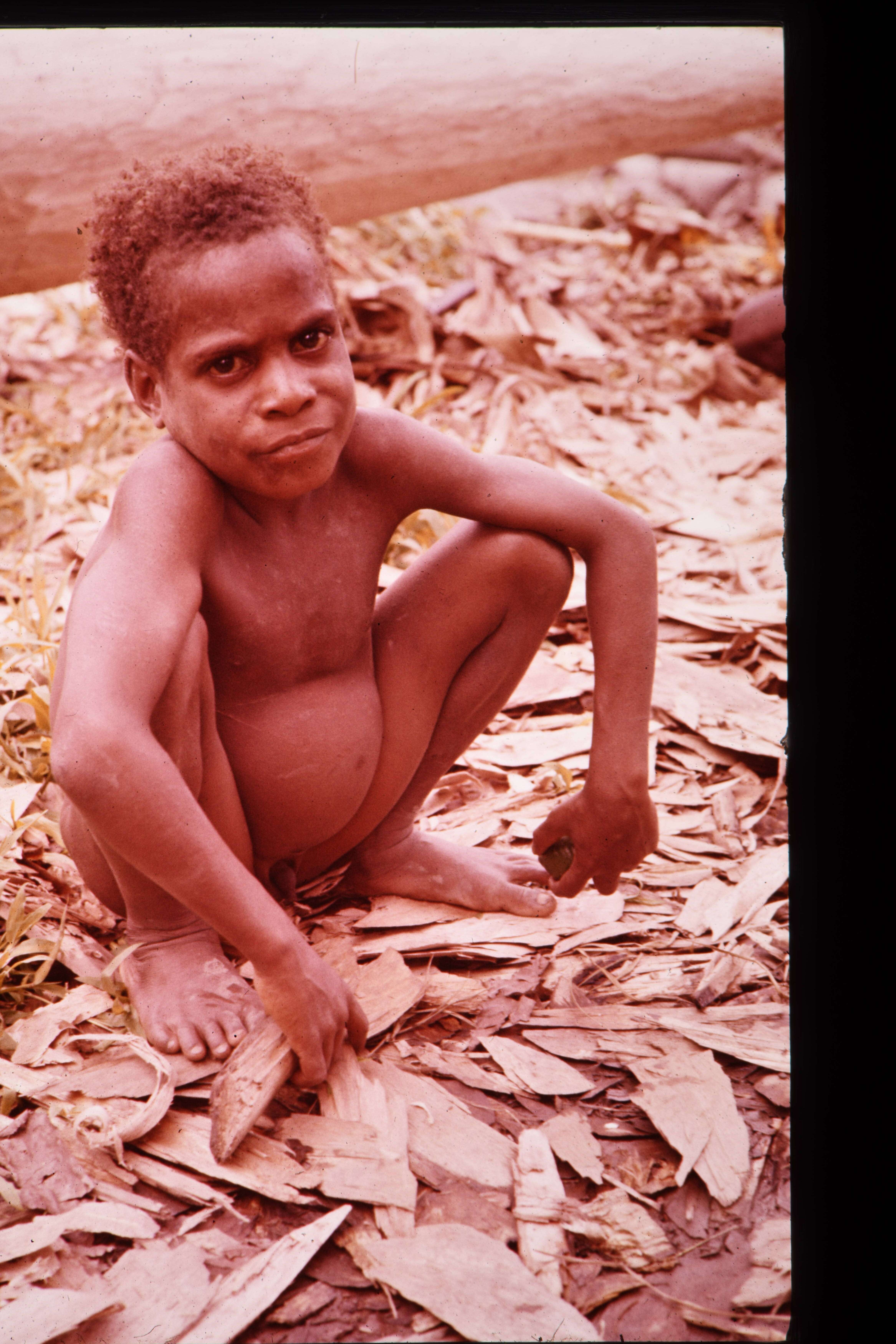 Ndosjuru, klein jongetje zittend op z'n hurken. 10 f...