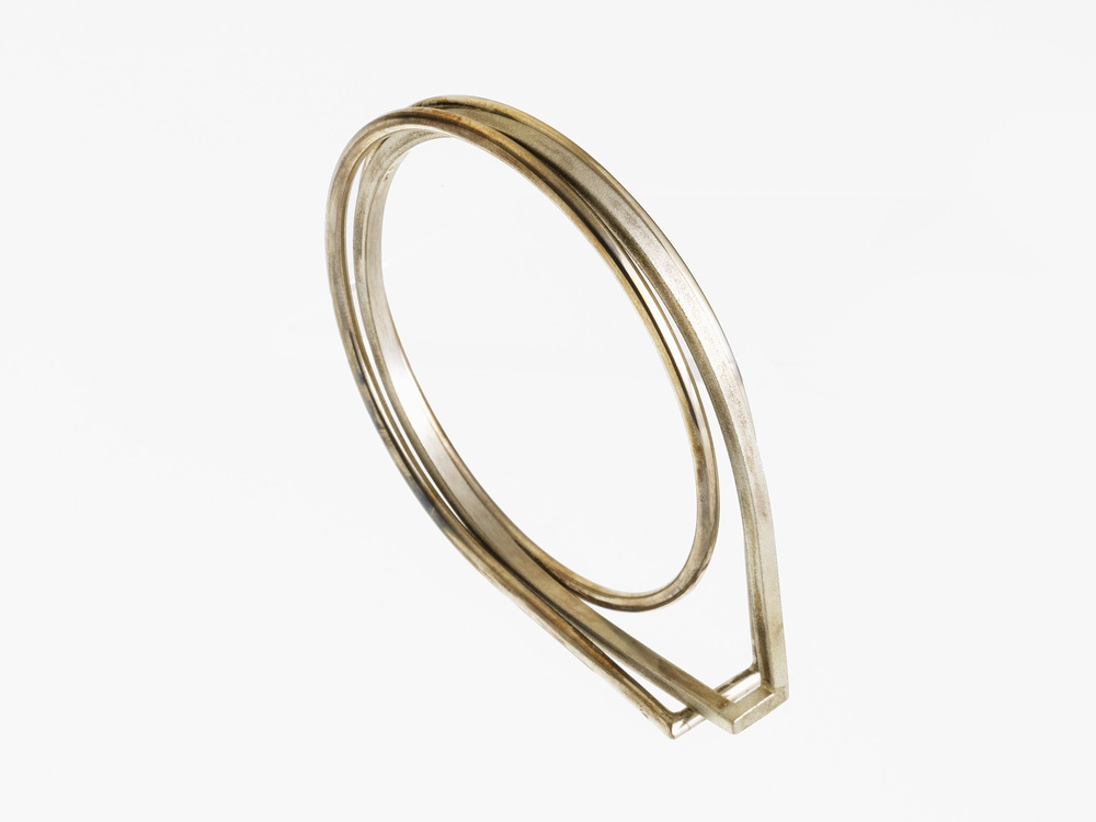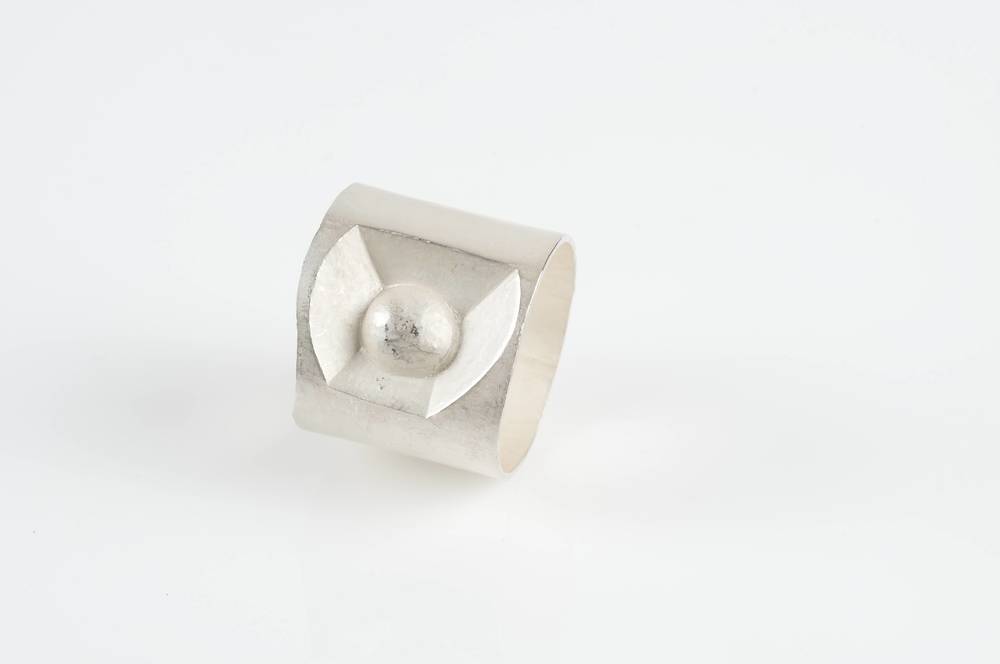 Ring van zilver in het vierkant met uitsparingen.