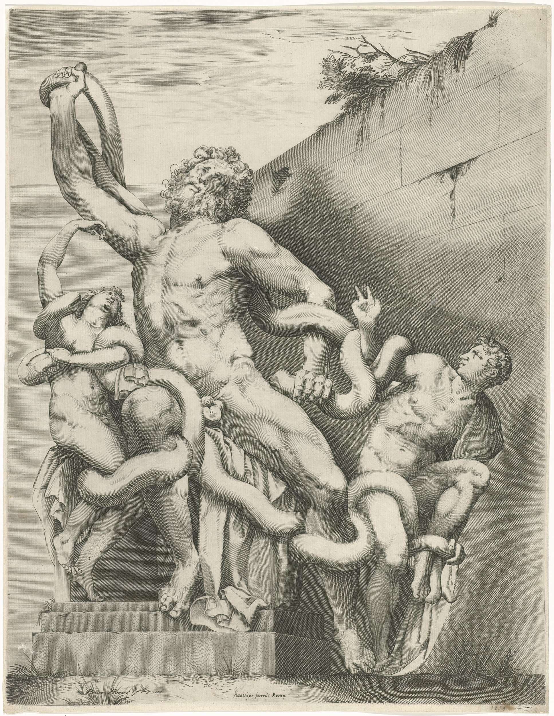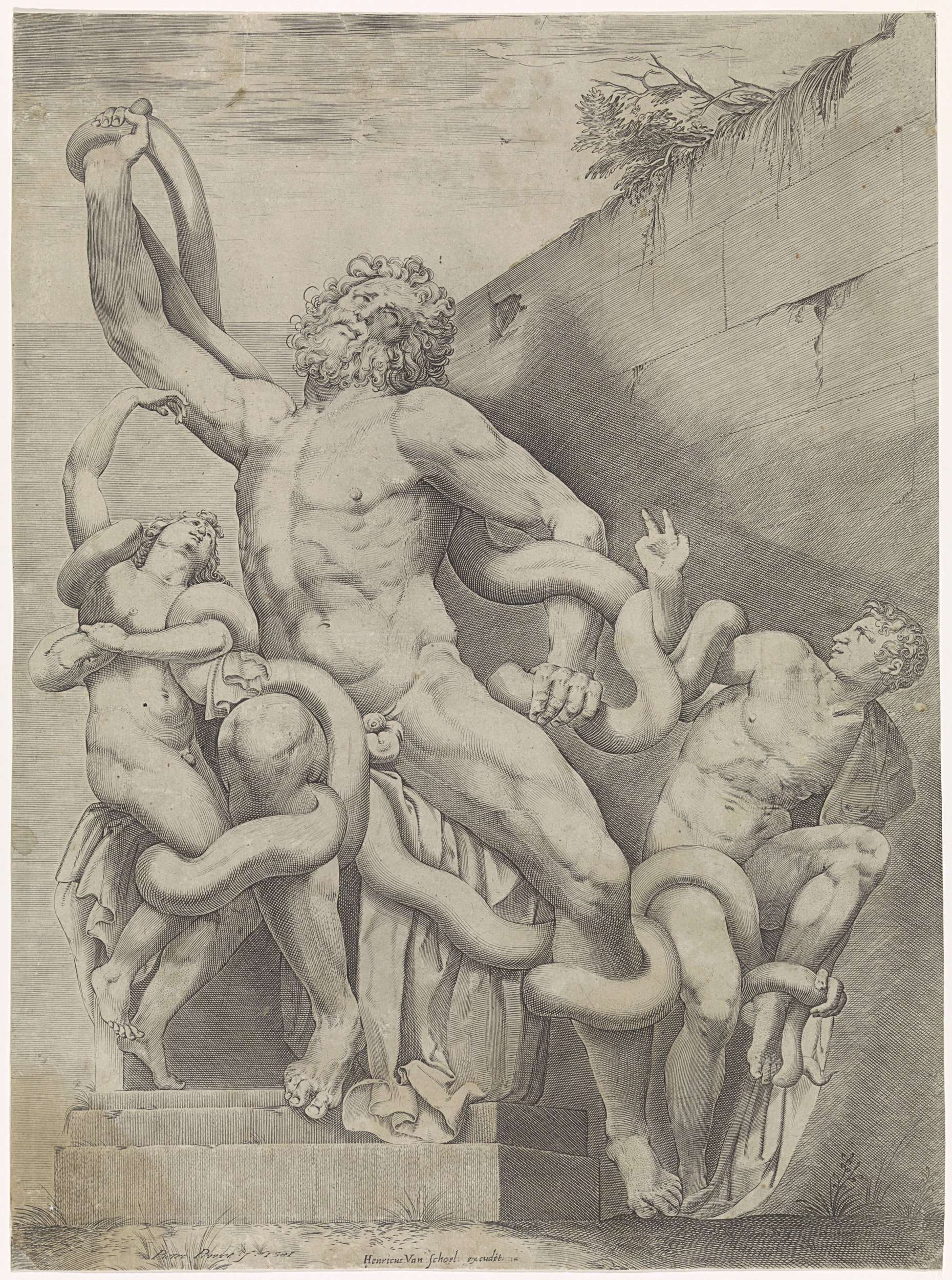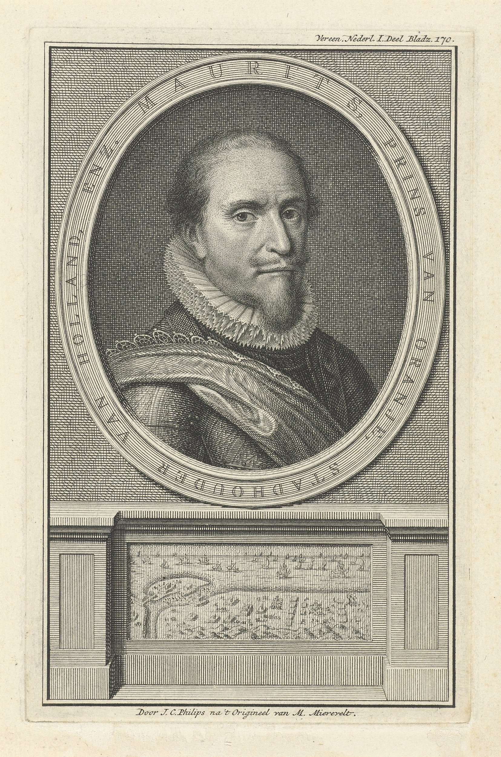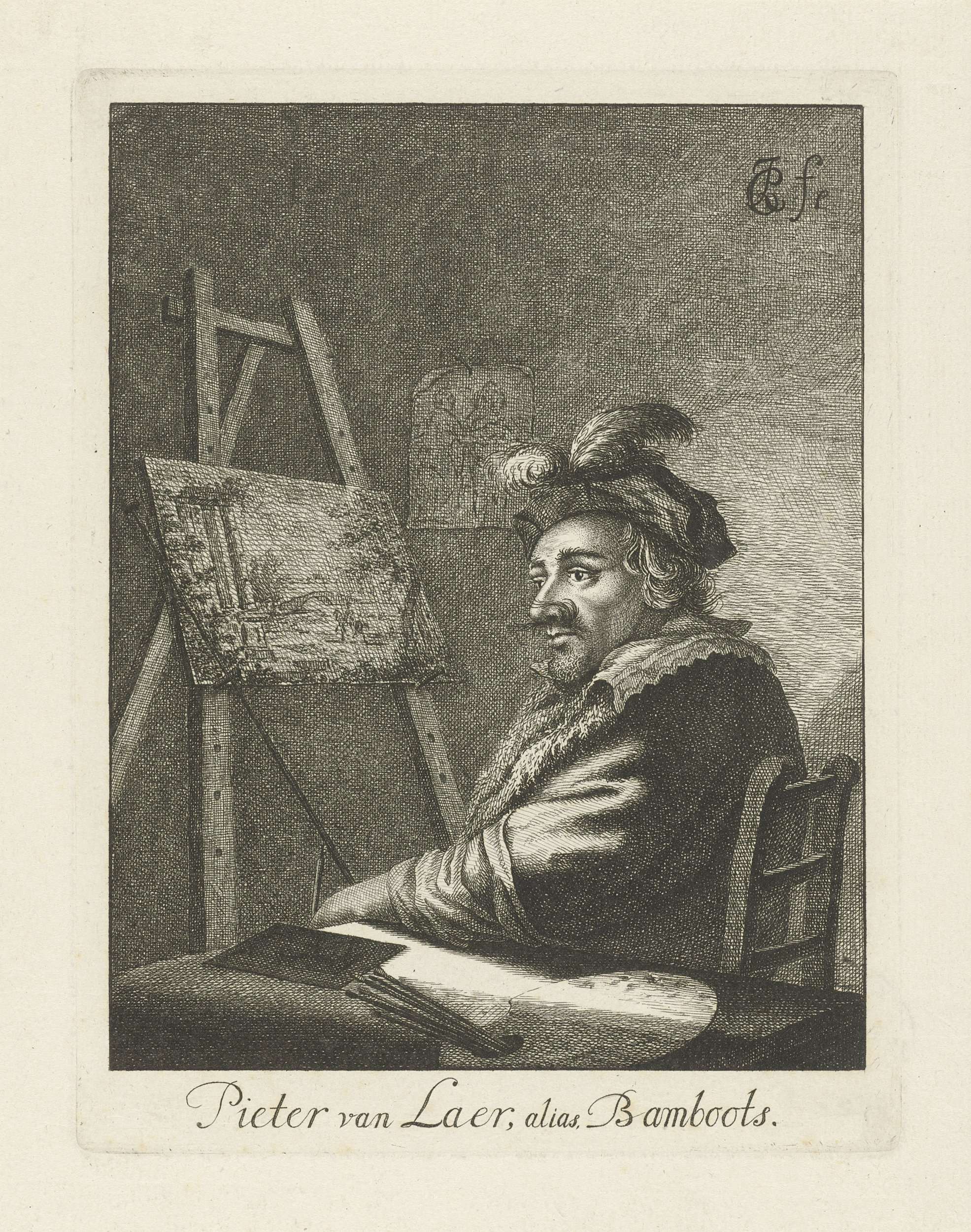 Twee putti bevestigen portret van Pieter Rabus aan g...