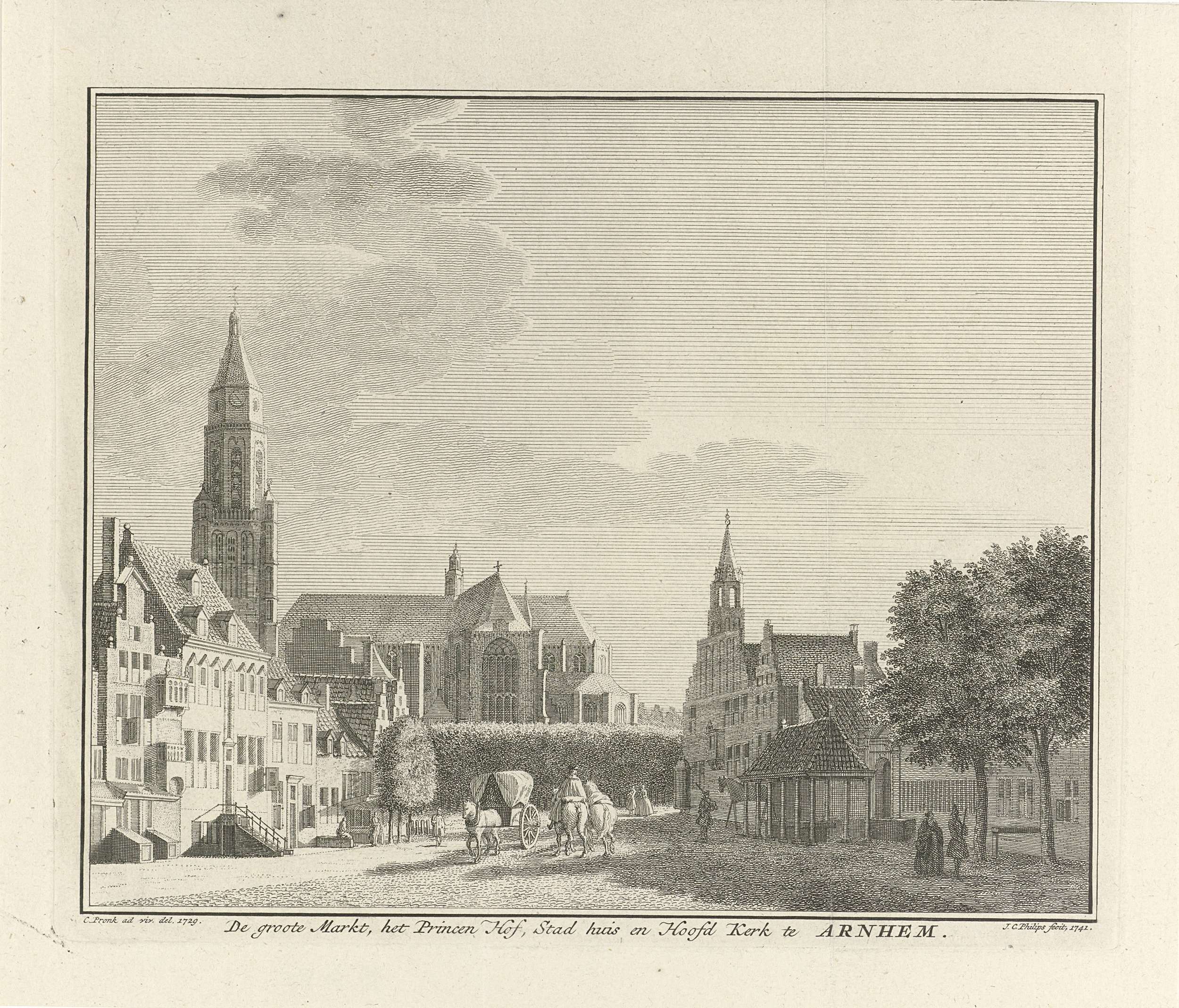 Gezicht op de Grote Markt, het Prinsenhof, het oude ...