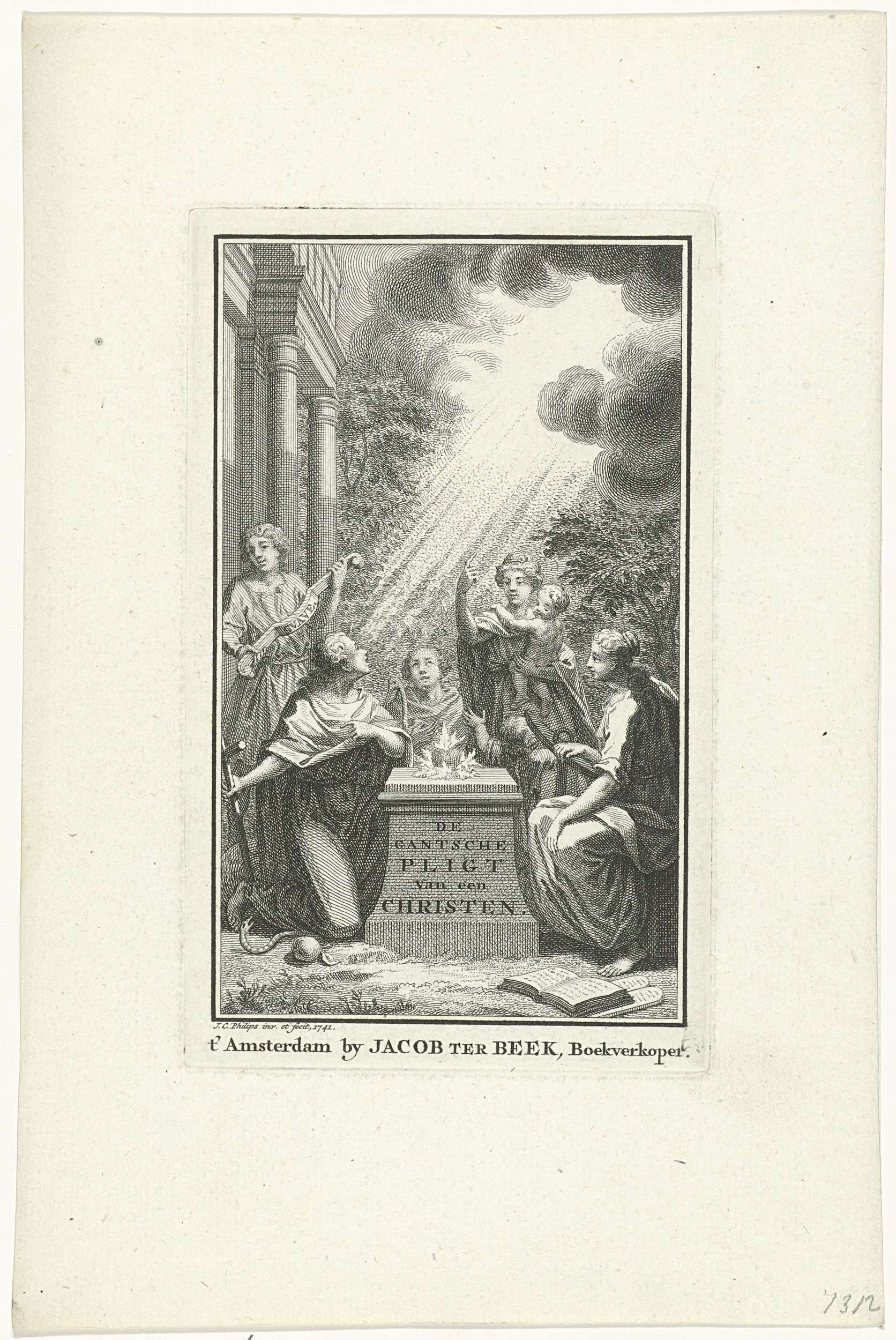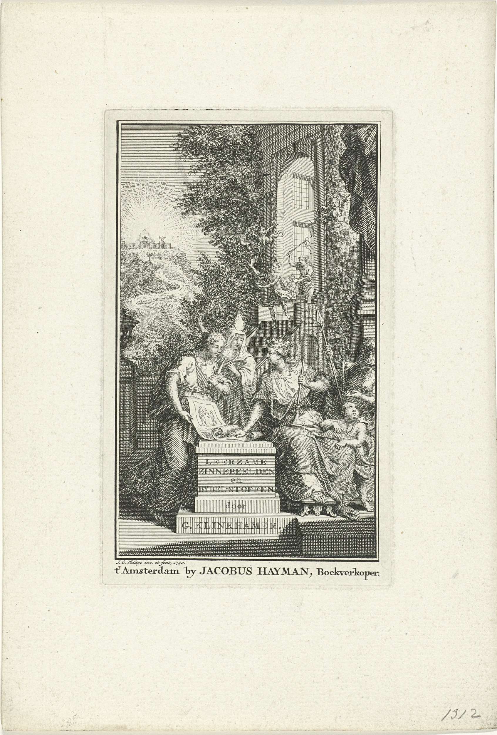 Allegorische titelpagina met Geloof, Hoop en Liefde