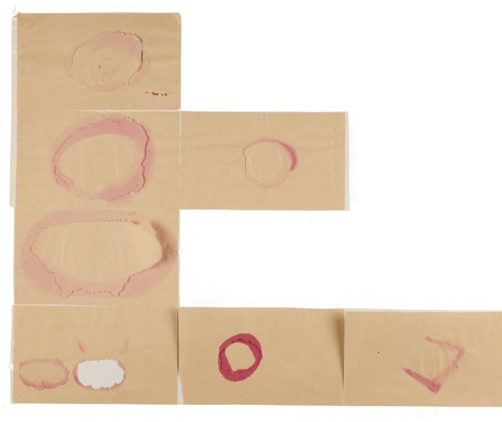 Zeven tekeningen van ringen met verf