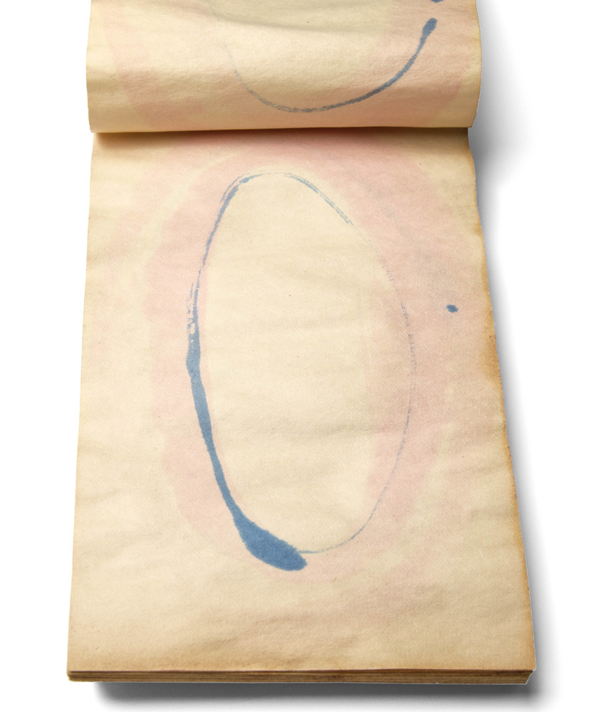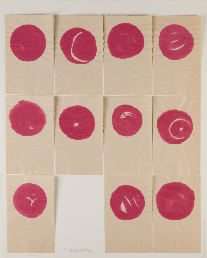 Elf tekeningen van ringen met rode verf