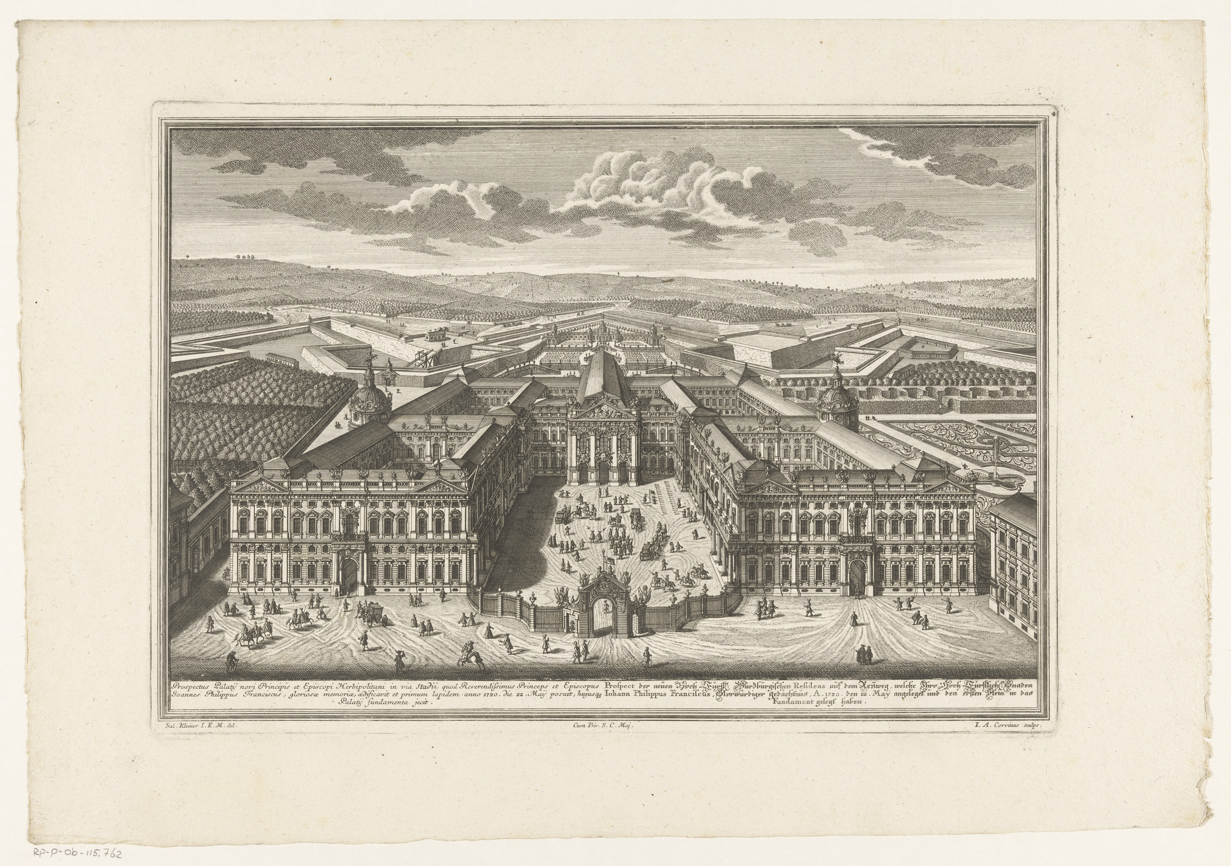 Gezicht op het Juliusspital en diens tuinen in Würzburg