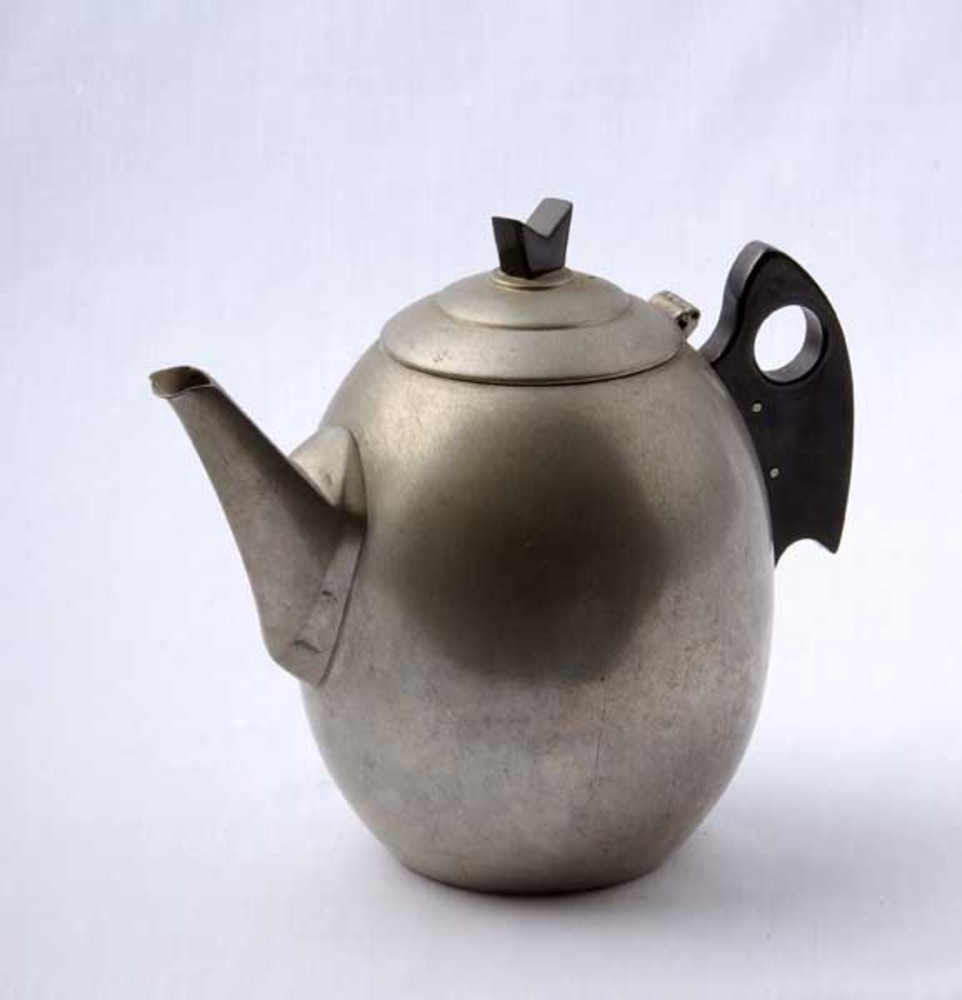 Koffiepot van tin en bakeliet, vervaardigd door C. K...