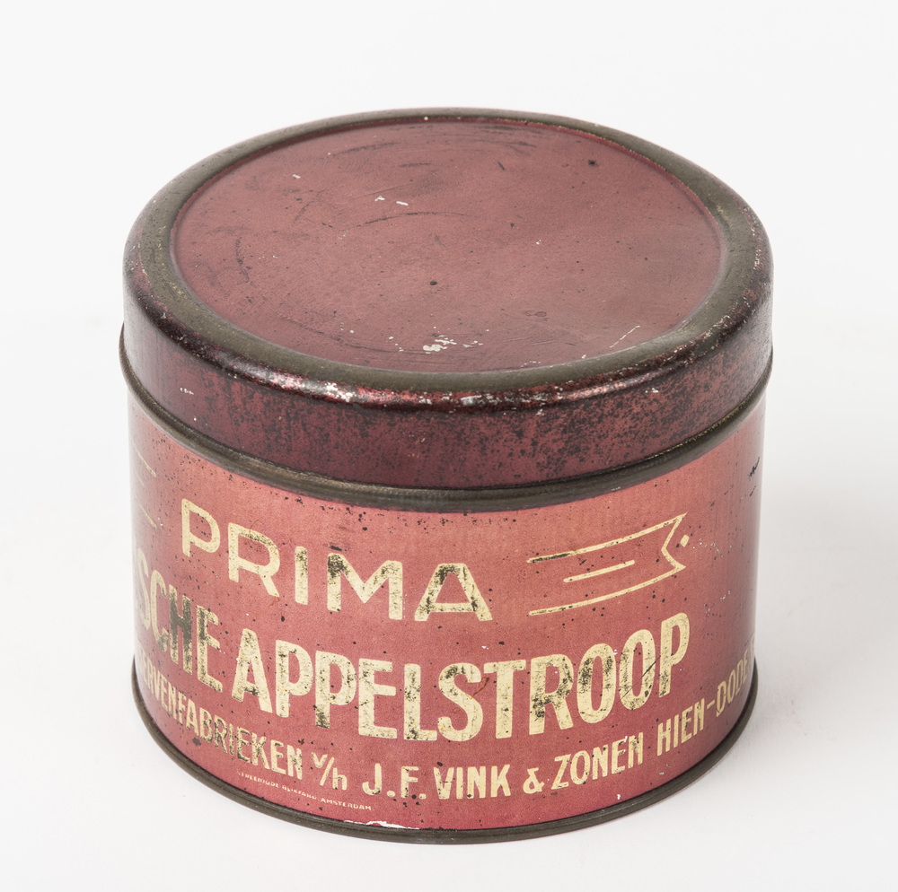 Blik voor appelstroop van de firma Vink uit Hien-Dod...