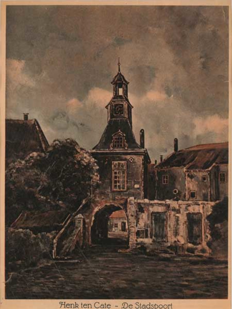 Kleurenafdruk, voorstellende de Waterpoort te Tiel, ...