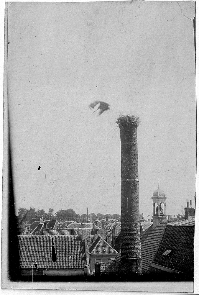Foto, voorstellende ooievaarsnest op schoorsteen, Ko...