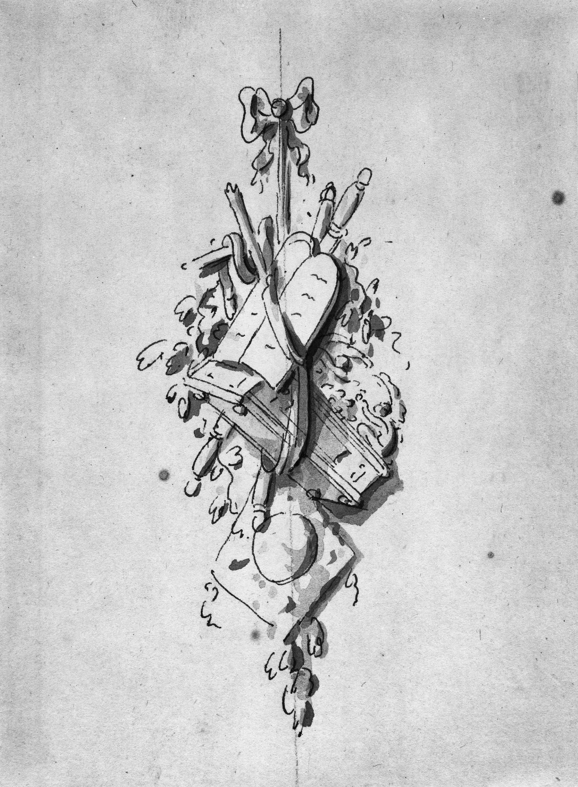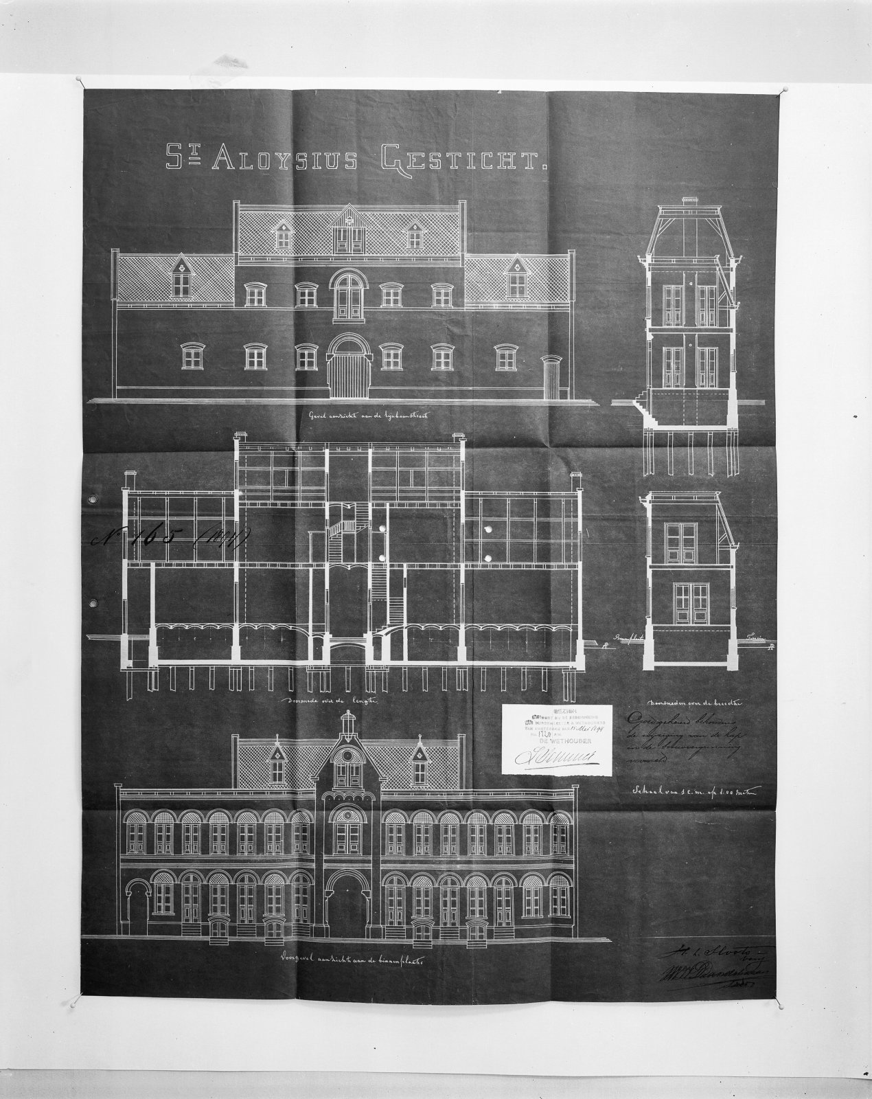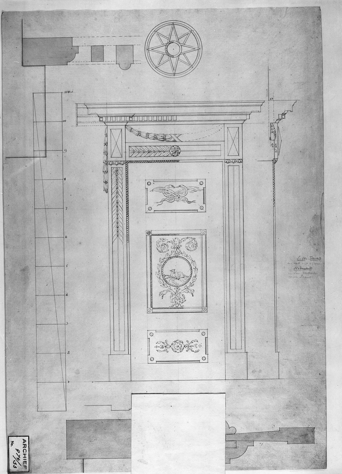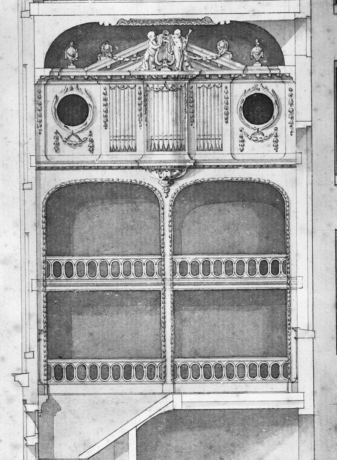 ontwerp tekening orgelwand in kapel, detail uit door...