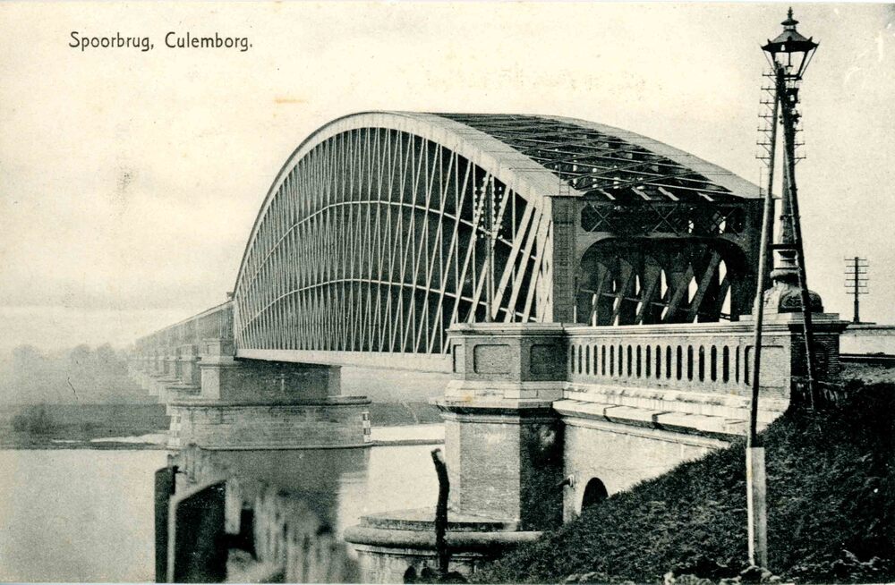 Ansichtkaart, voorstellende de spoorbrug te Culembor...