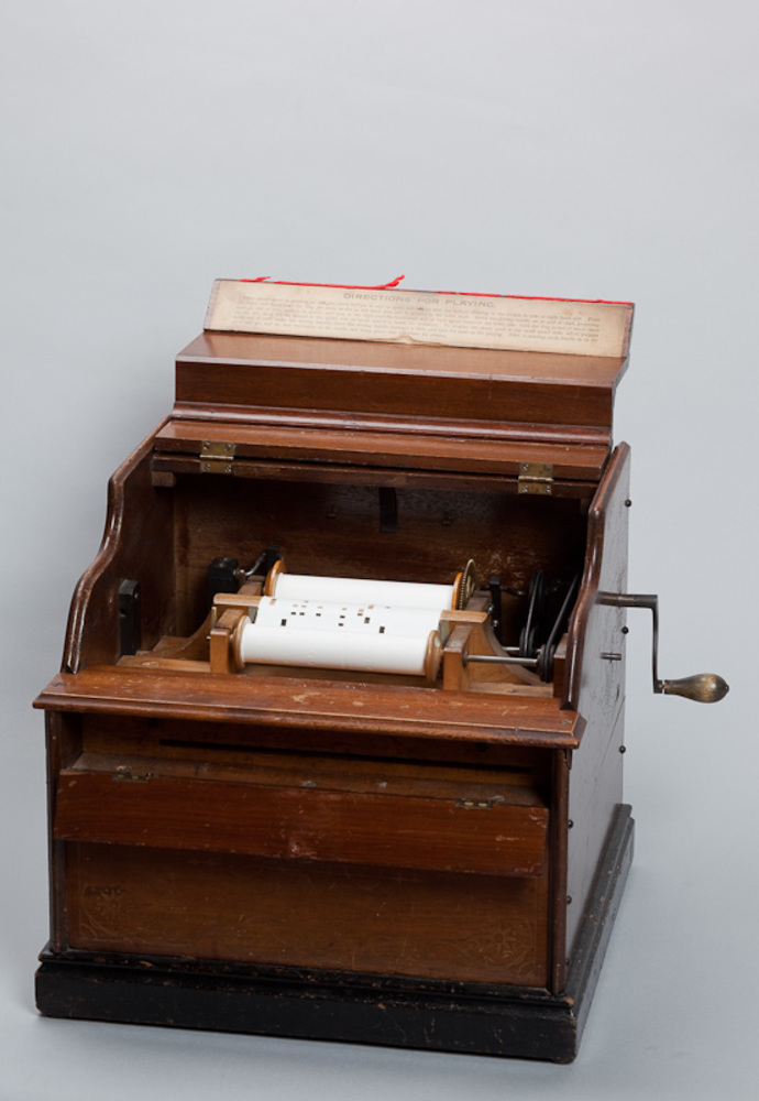 Buik- of tafelorgel van het merk The Improved Celestina