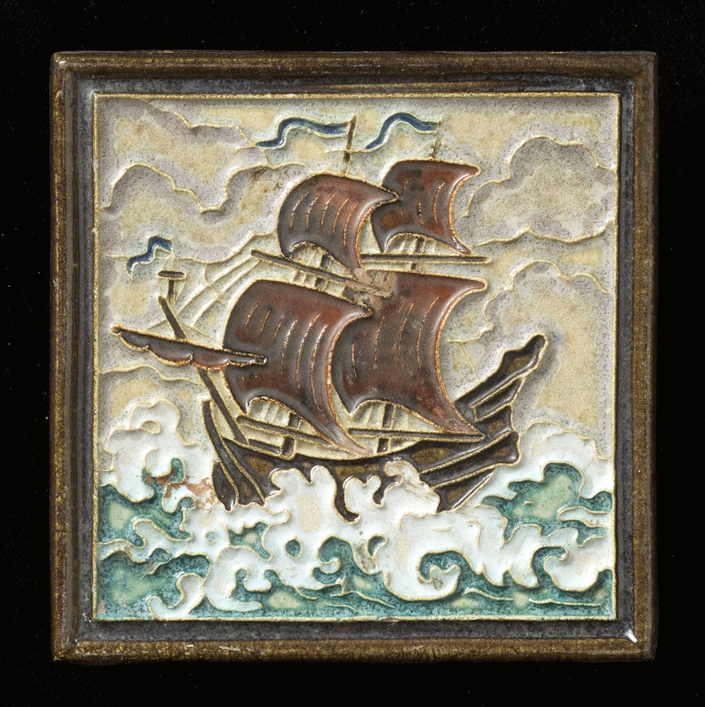 Tegel in cloisonné-techniek, met voorstelling: Kraak...