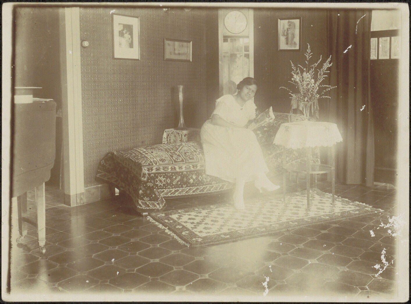 Portret van een vrouw op een chaise longue