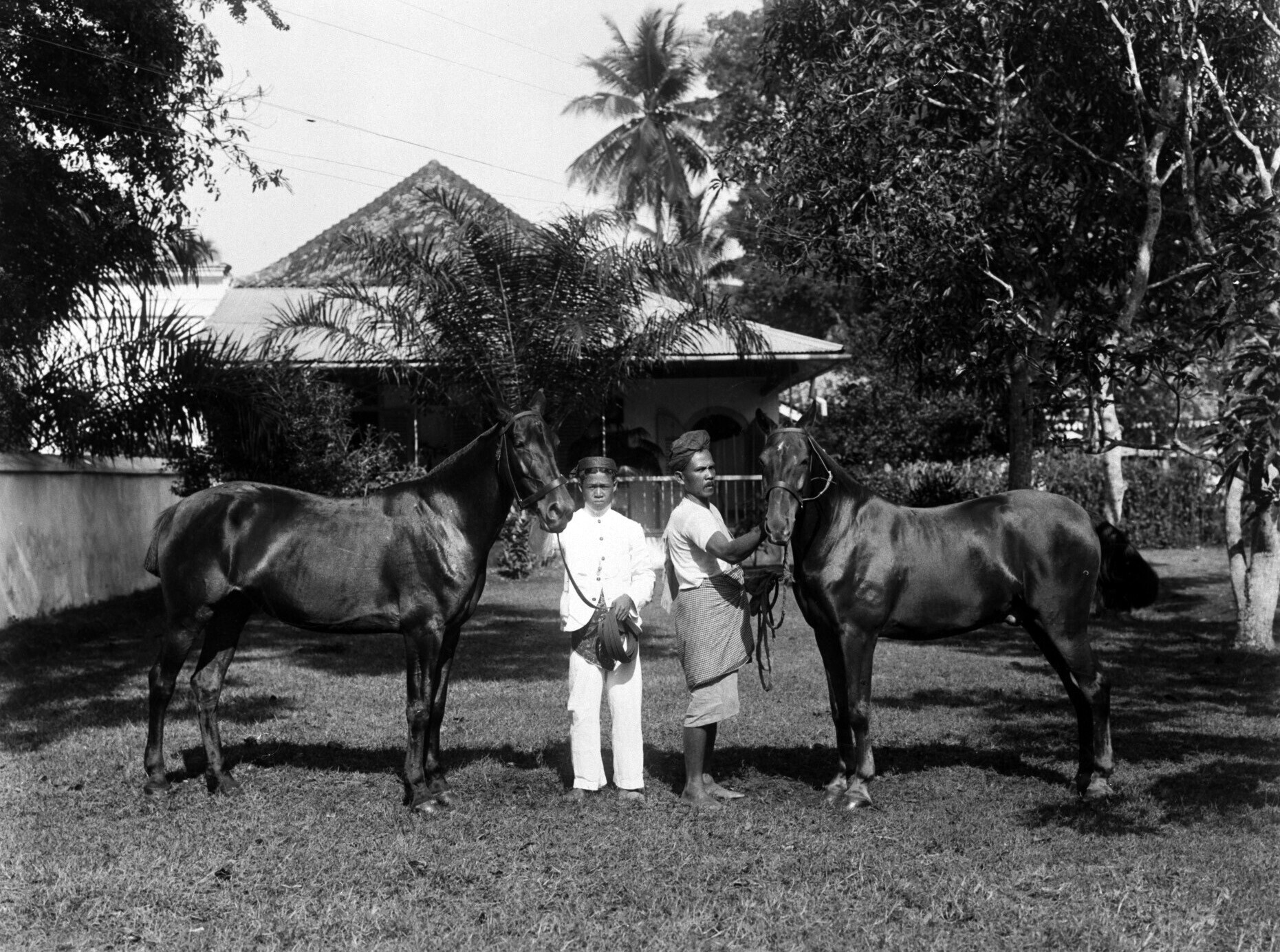 Roekmita en Pandoe Soeradhiningrat in een tuin