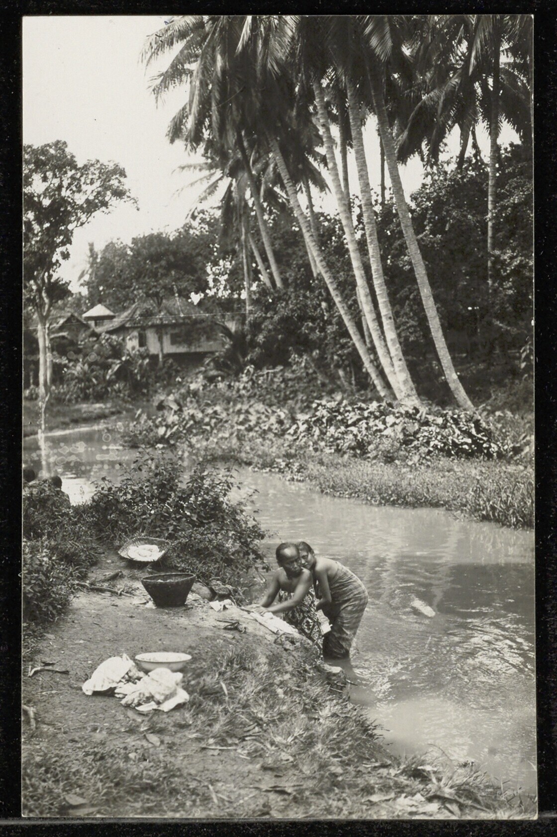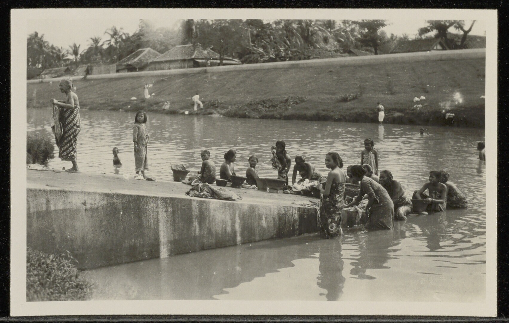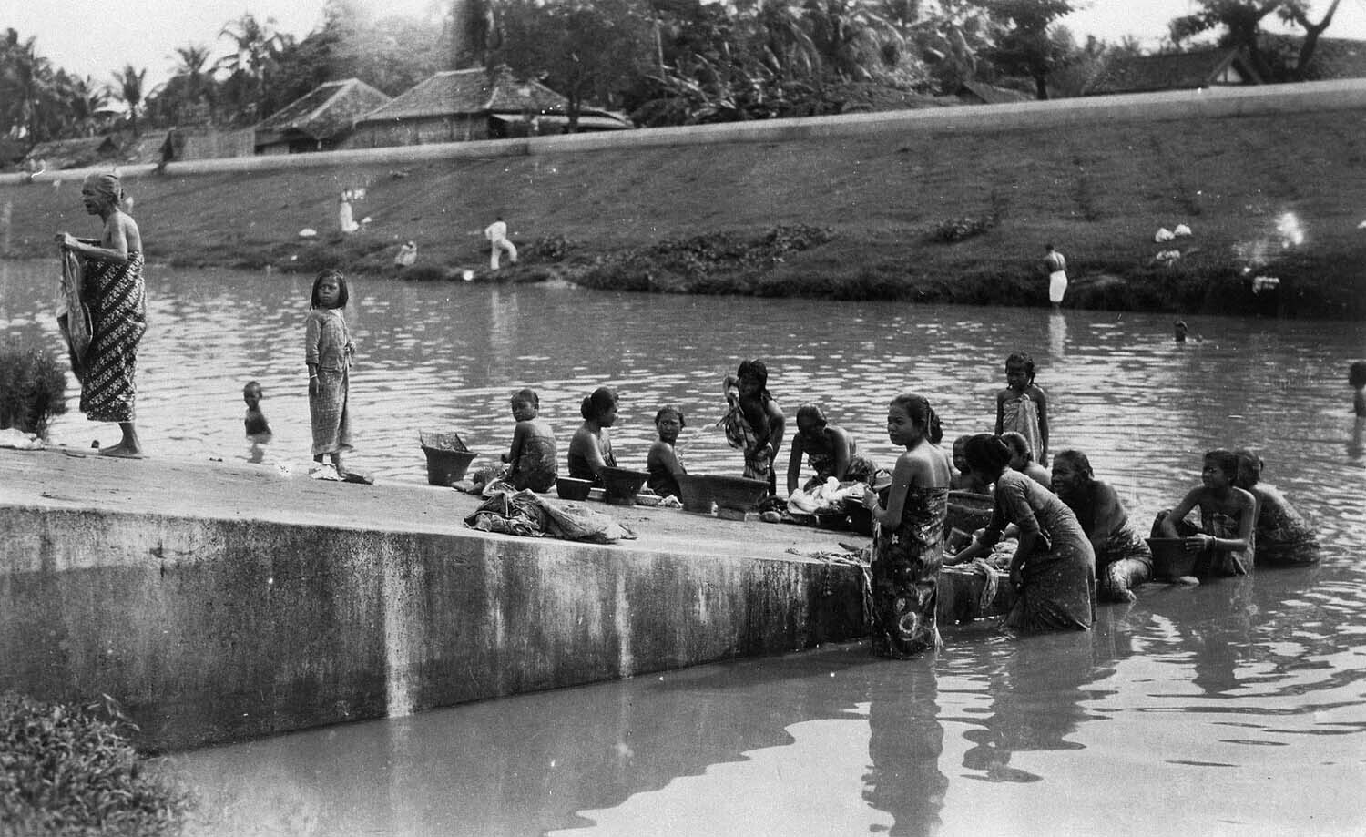 Vrouwen doen de was in de Molenvliet ter hoogte van ...