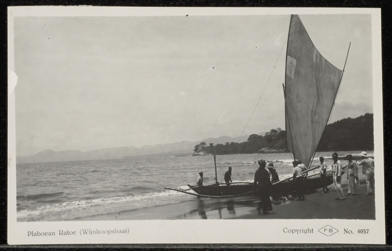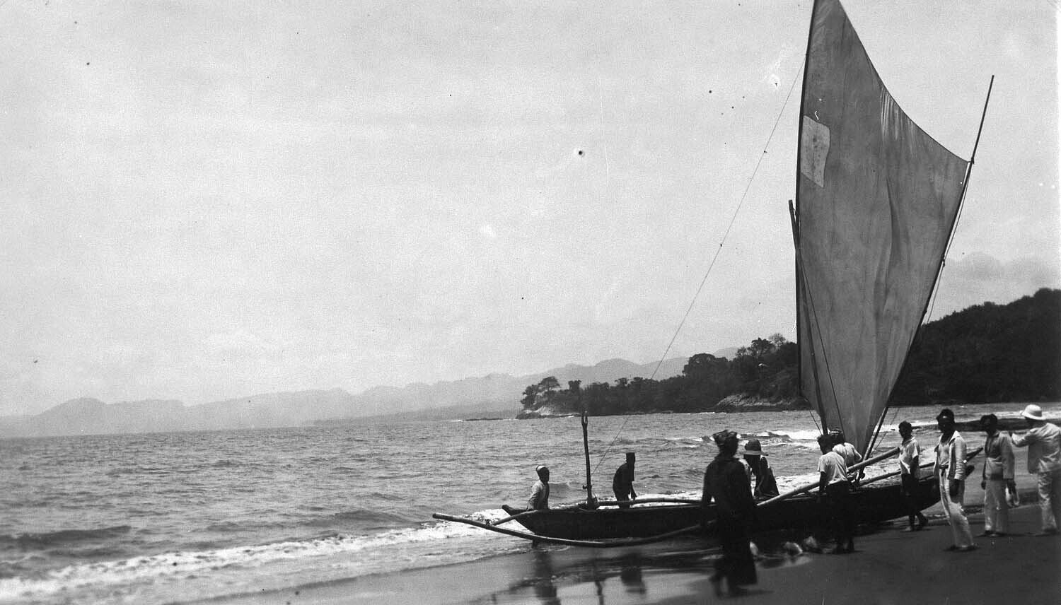 Strand met prauwen aan de westkust van Bantam