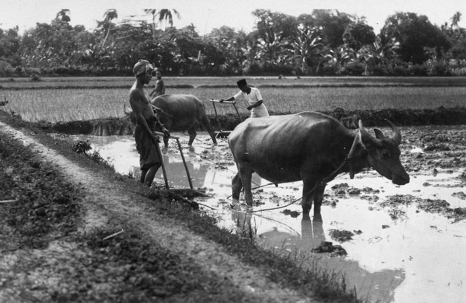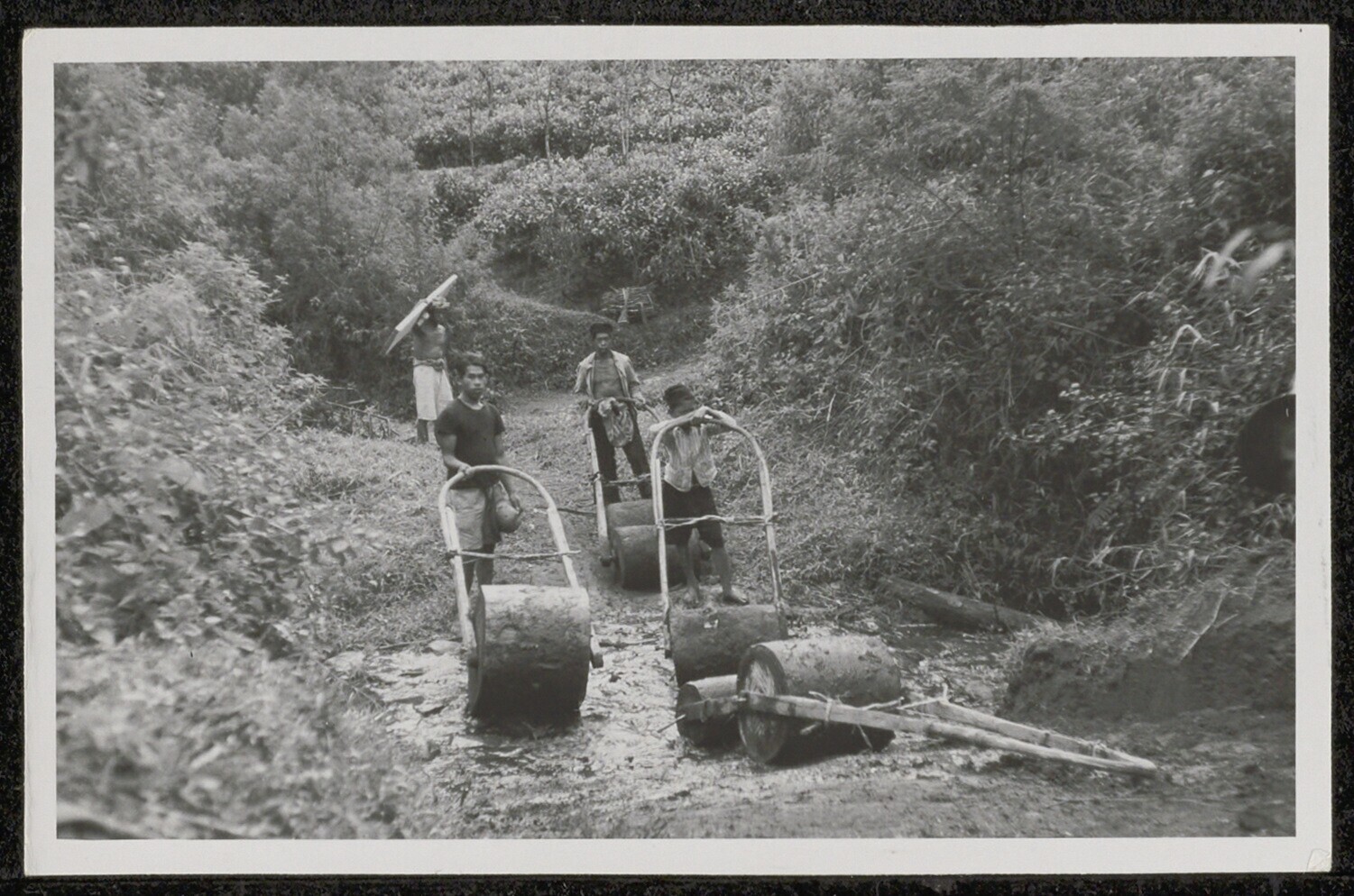 Arbeiders met walsen in het bosdistrict Garoet