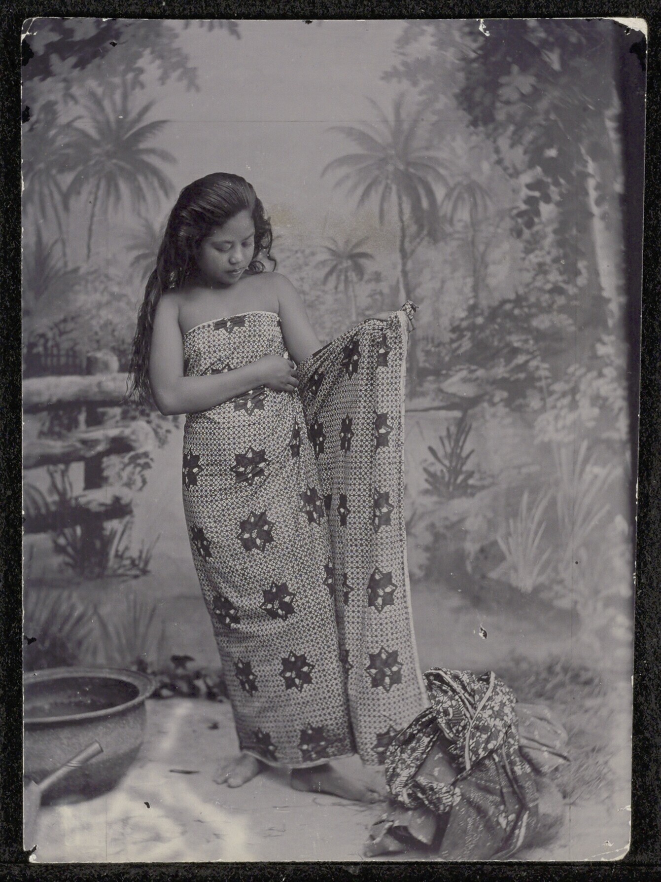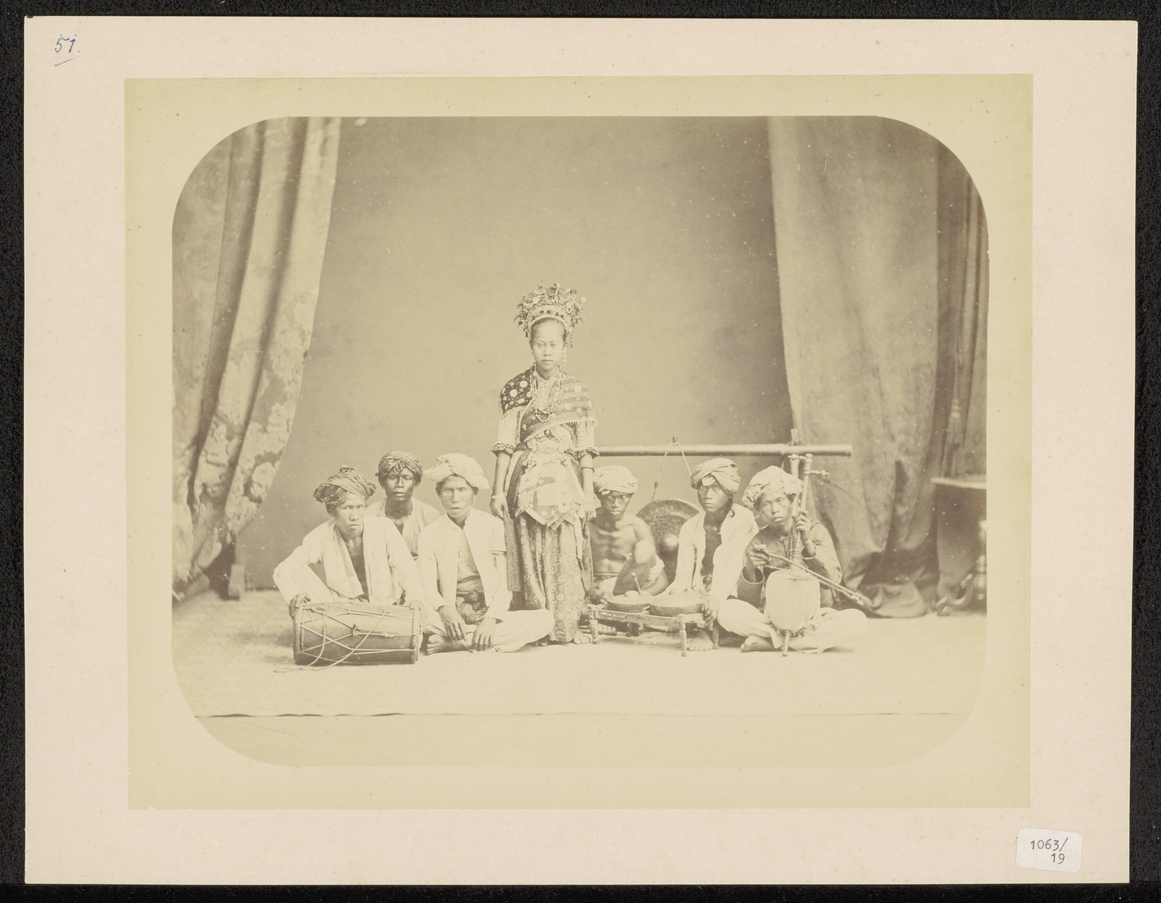 Studioportret van een ronggeng danseres in Batavia, ...