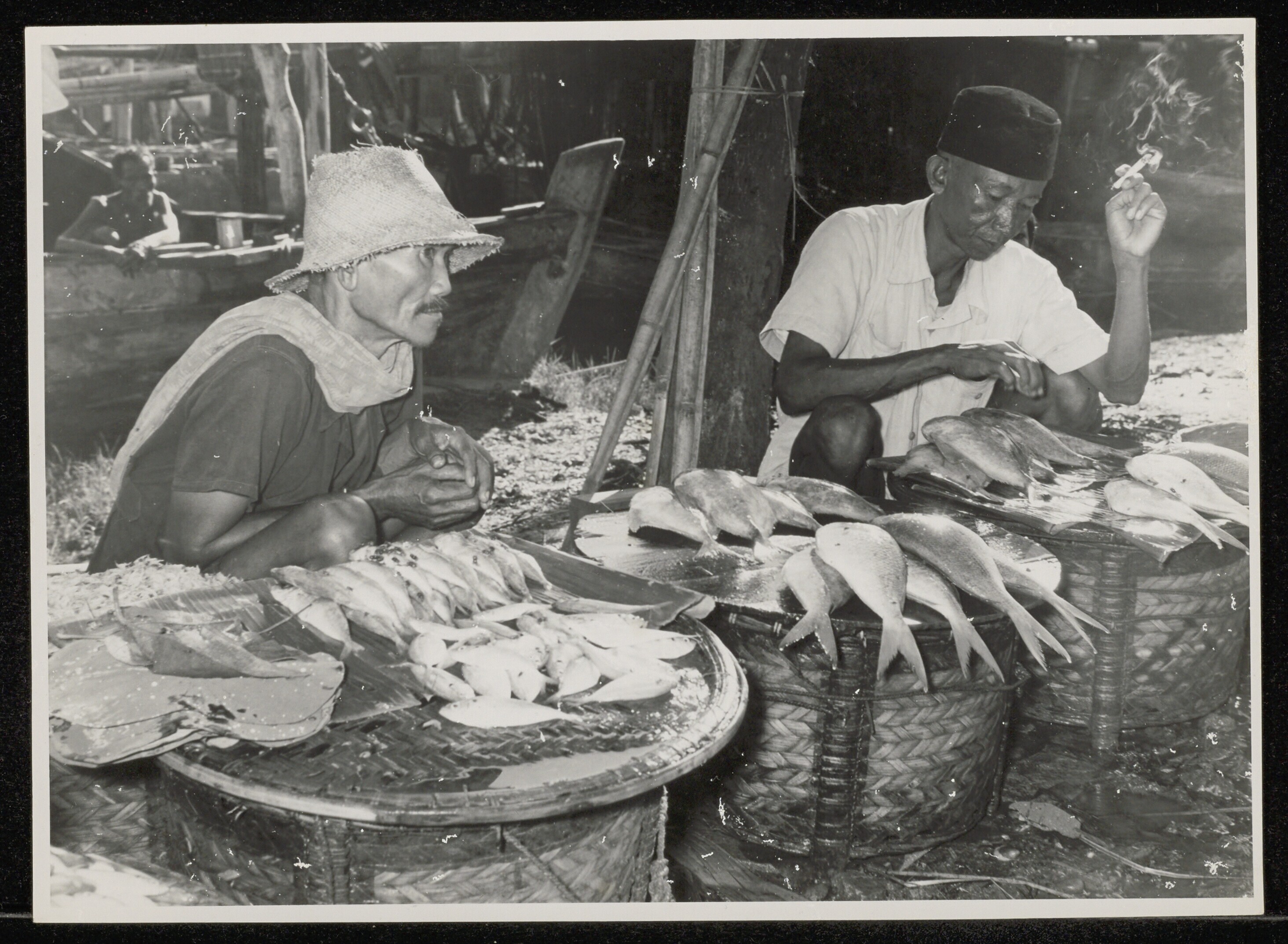 Vissers met netten in de branding bij Tjisolok, Wijn...