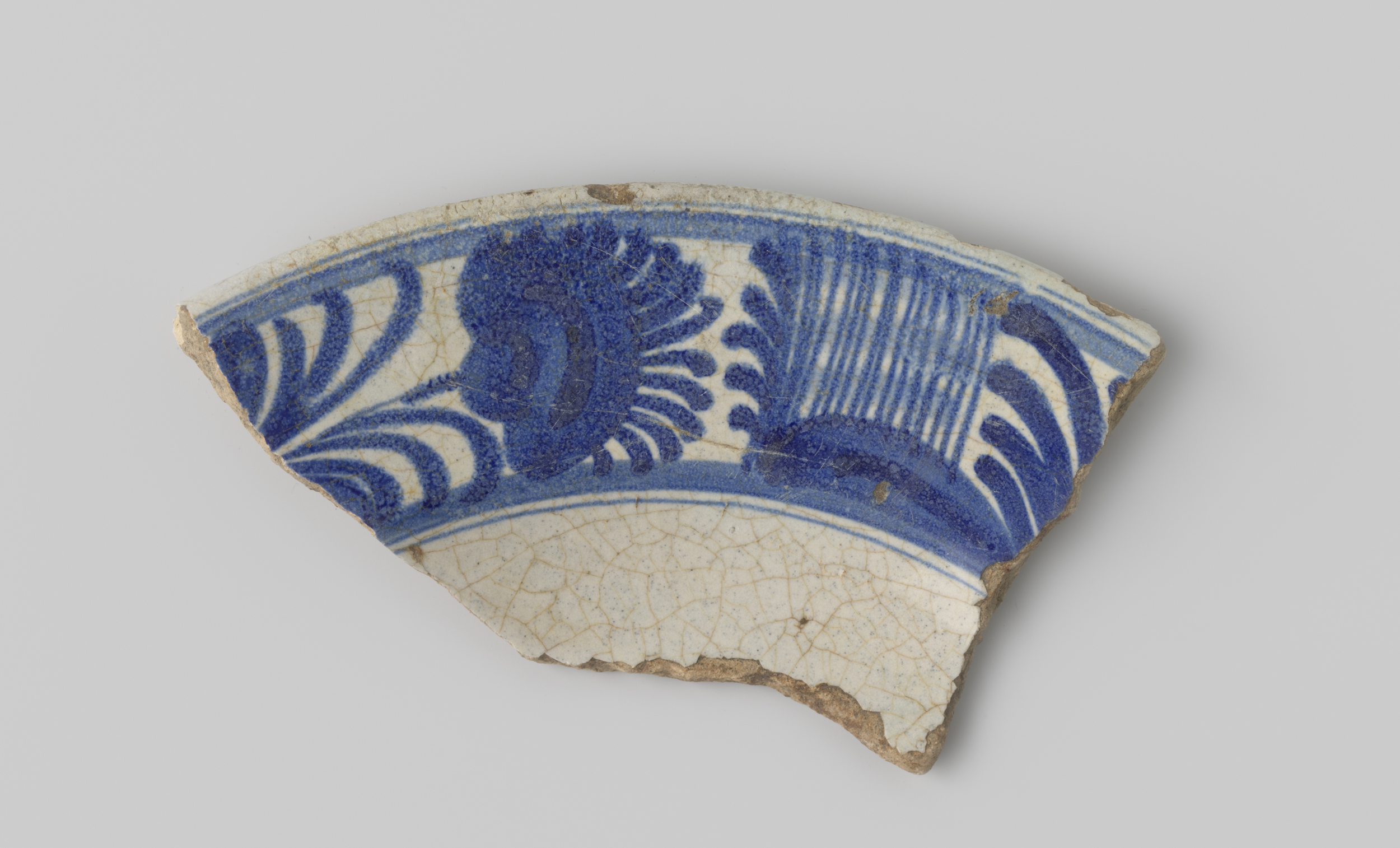 Fragment van een schotel van witbakkend aardewerk, m...