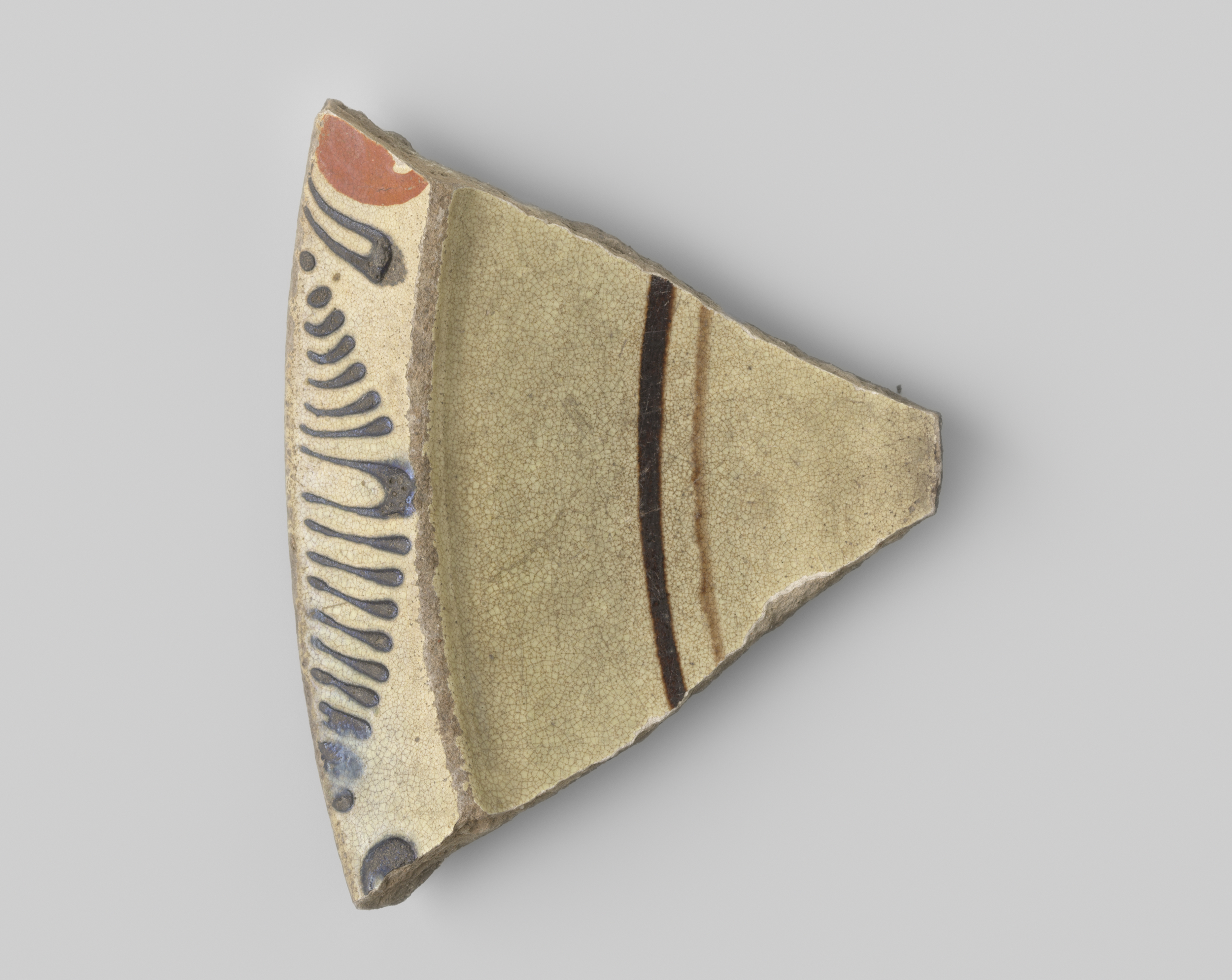 Fragment van een schotel met gelige scherf, voorzien...