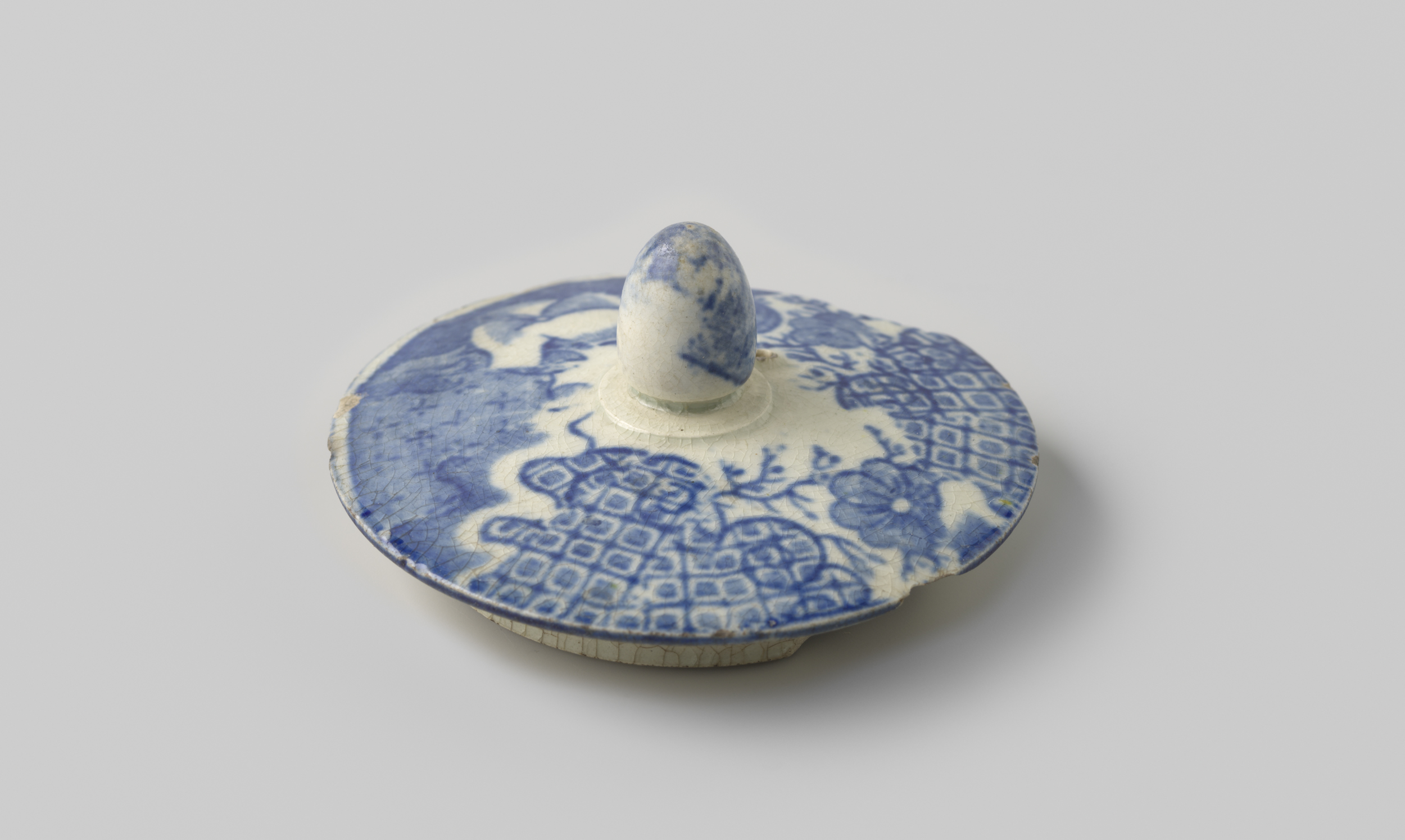 Deksel van witbakkend aardewerk, met aan de bovenzij...