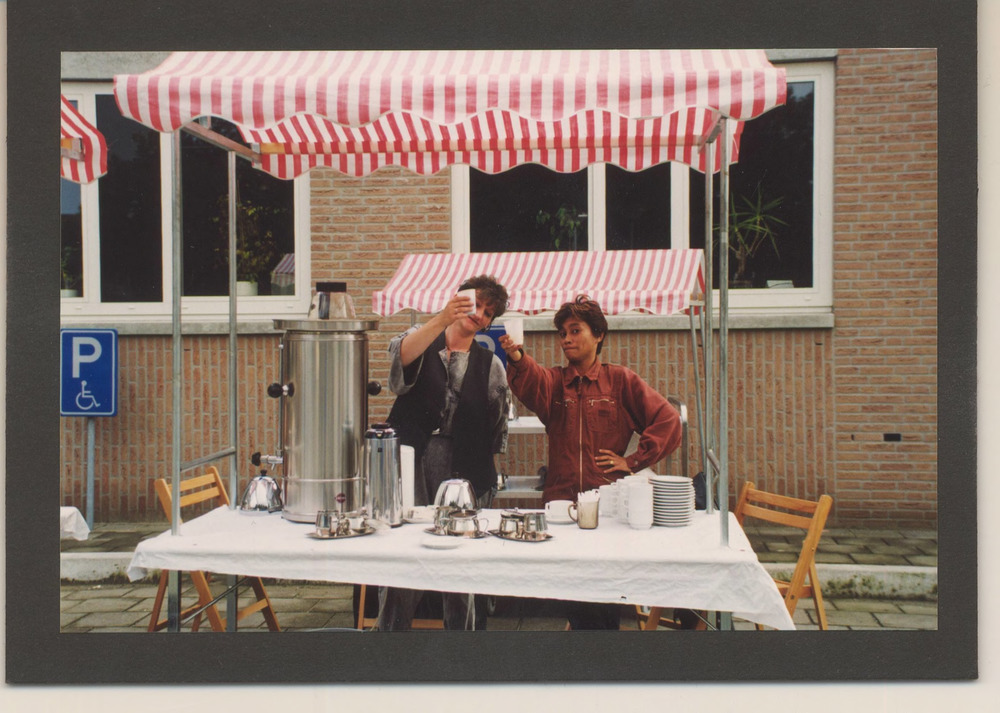 Links een bestuurslid v.d. Nudistenvereniging Tiel