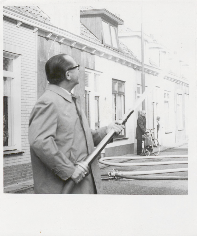 Met brandslang brandweer spuitende Burgemeester Broe...