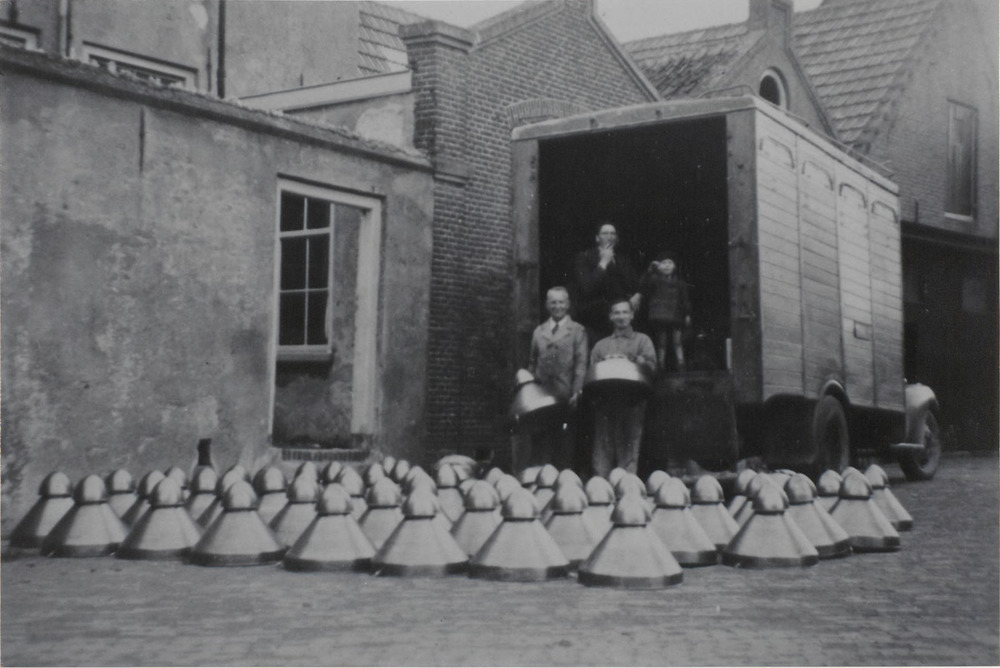 Metaal arbeider. Hr. V. Doorn maakt kappen voor stra...
