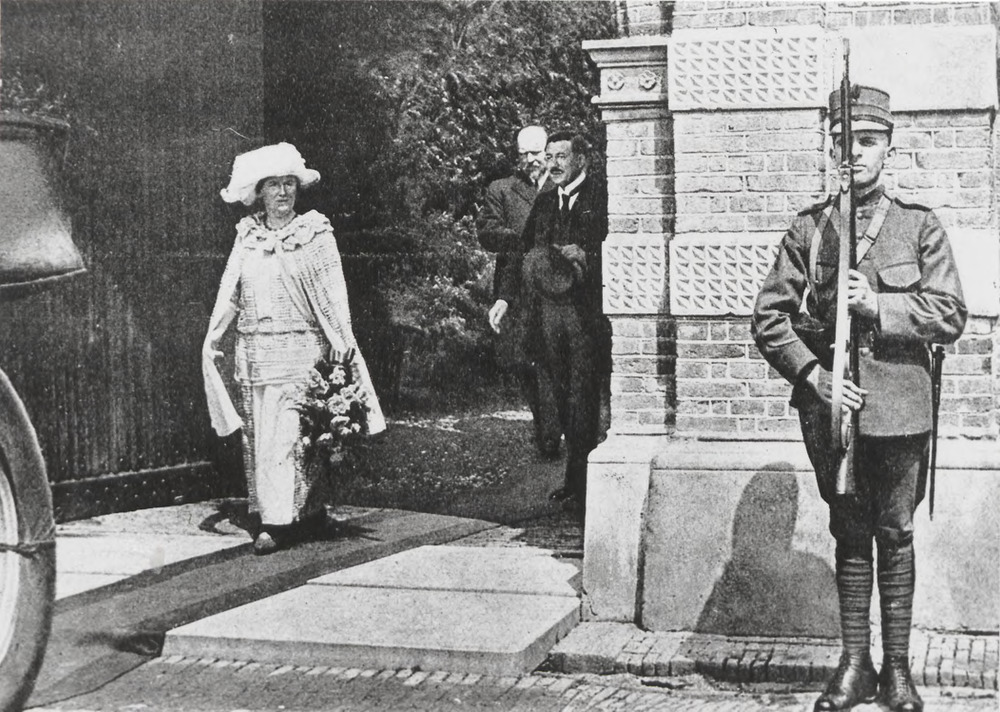 Bezoek koningin Wilhelmina aan het weeshuis. Repro v...
