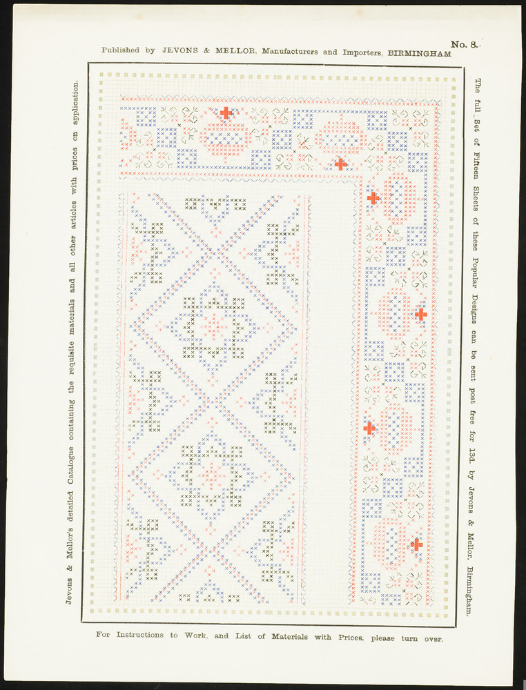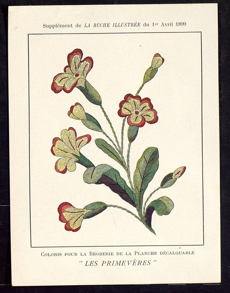 Op dit borduurpatroon staat een boeketje primula's i...