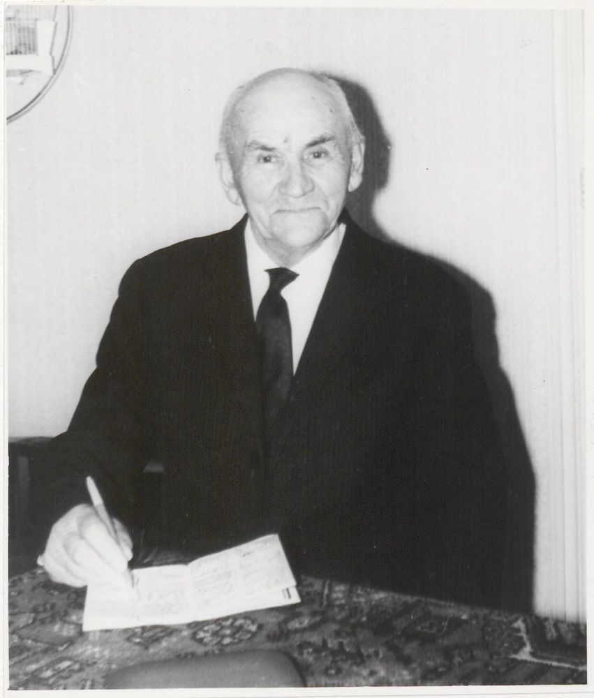 Oudere man zet handtekening in een paspoort