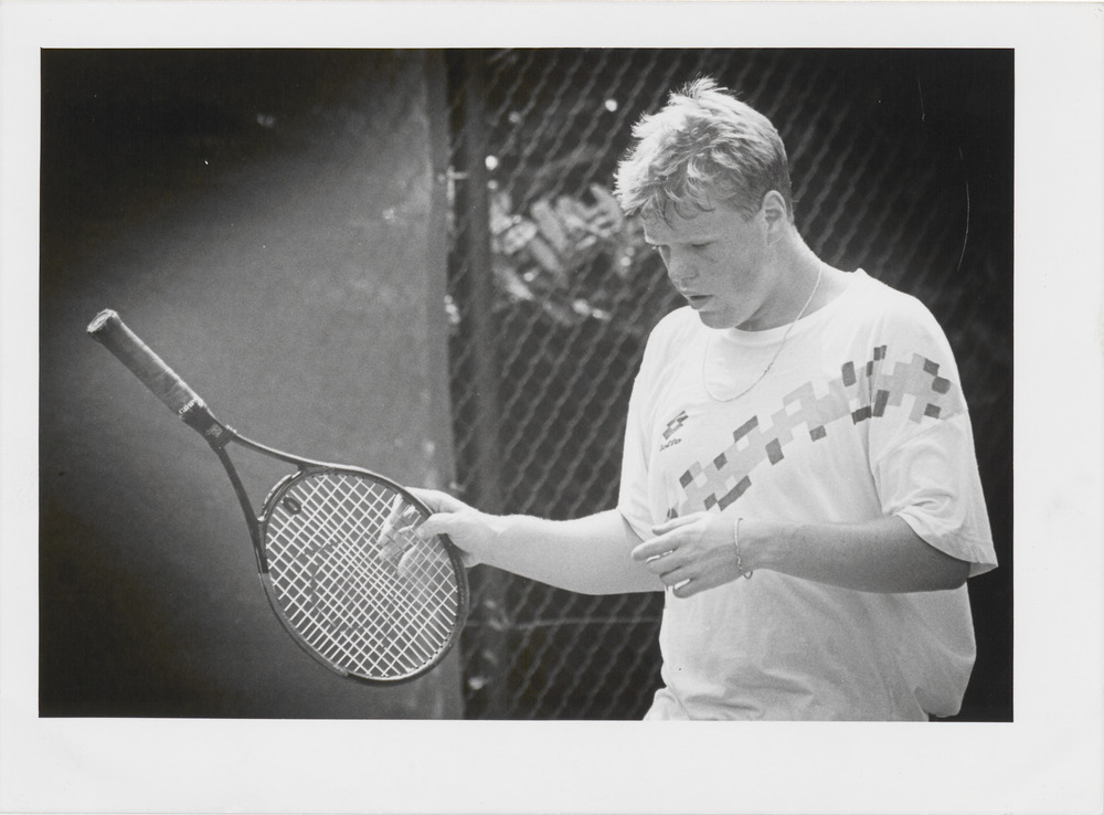 Foto van een jongeman in een Lotto-shirt met zijn te...