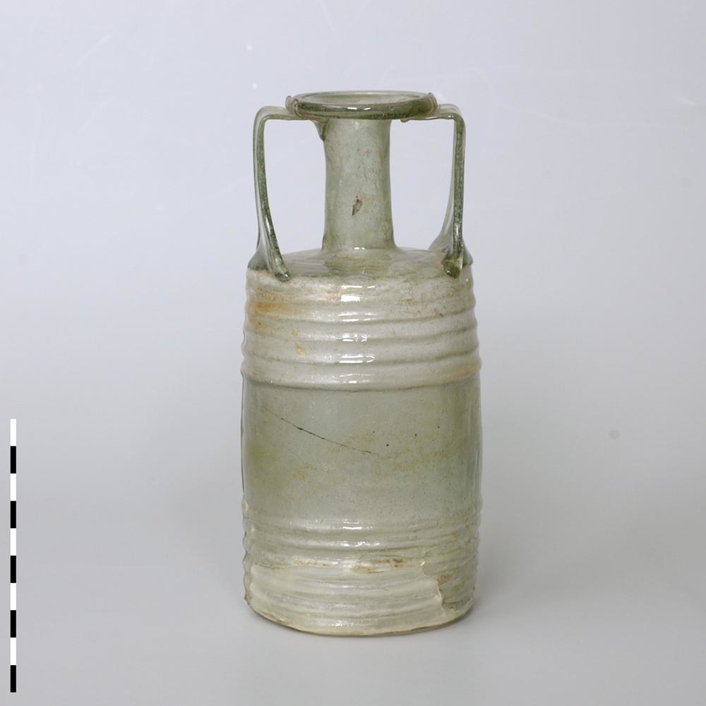 Fles van helder doorzichtig glas uit de laat Romeins...