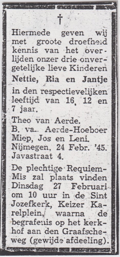 bidprentje, rouwadvertentie, krantenknipsel Netty, R...