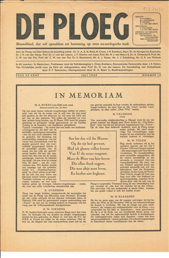De Ploeg Nummer 14, Juli 1945.