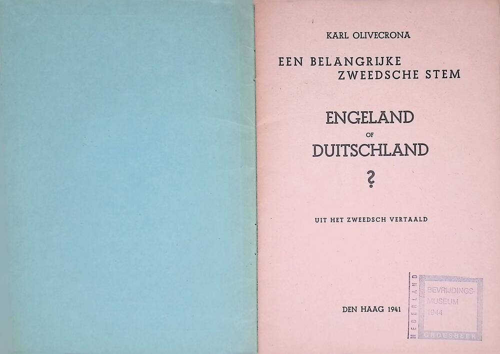 Brochure: Kalr Olivecrona, Engeland of Duitschland? ...