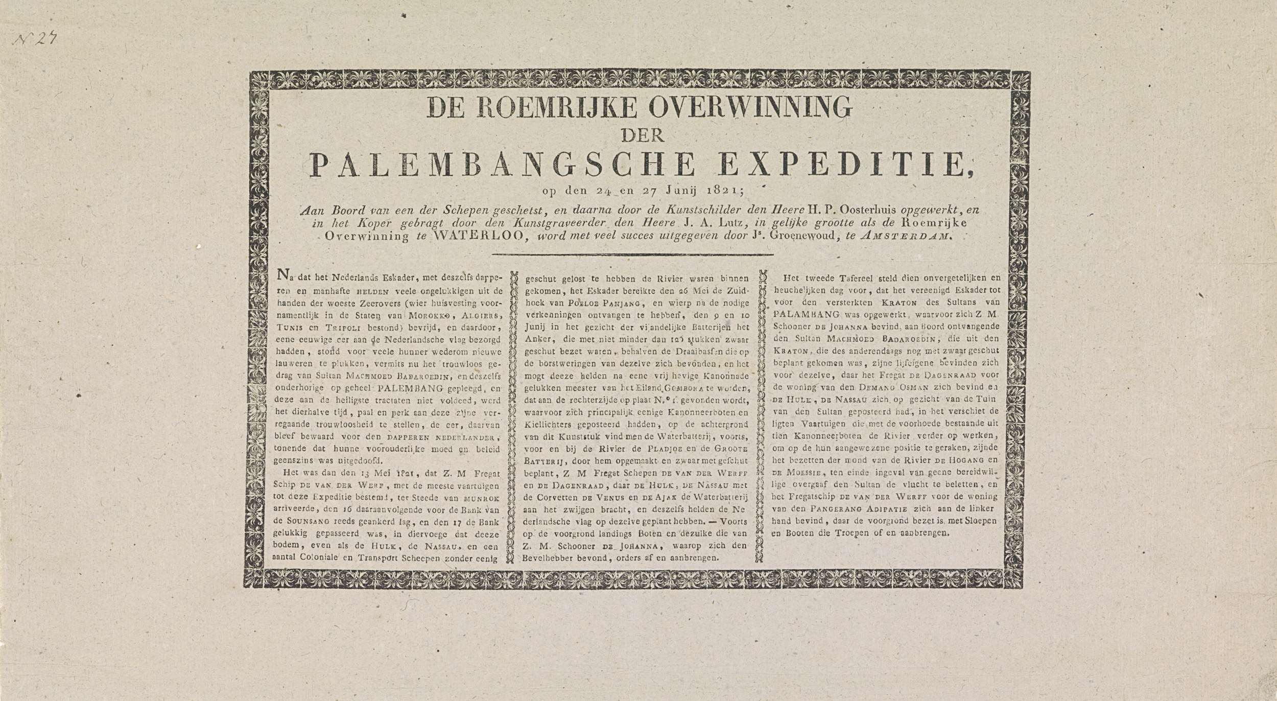 Verklaring bij de prent van de overwinning op Palemb...