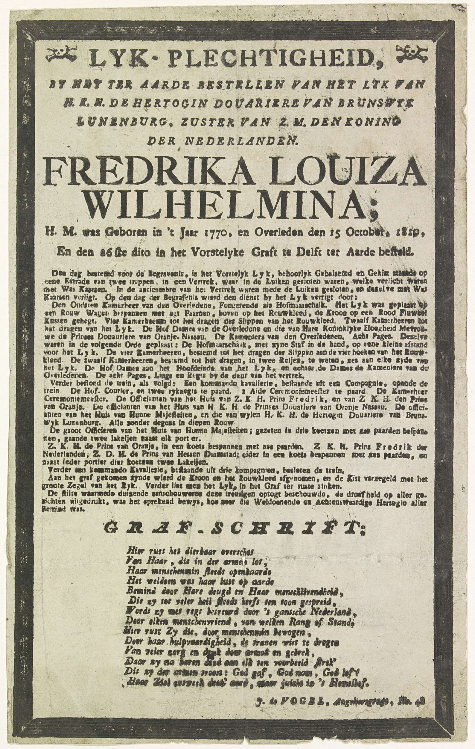 Begrafenis van prinses Louise van Oranje-Nassau, 1819