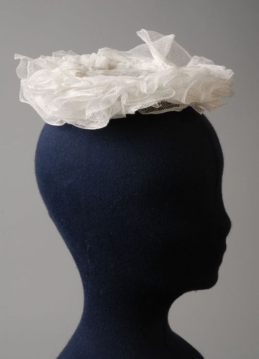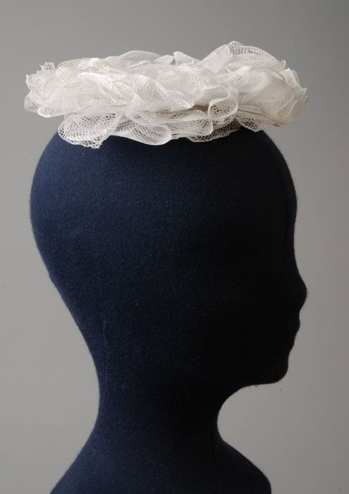 Keuvel of streekdrachtmuts, bol van wit tule met wit...