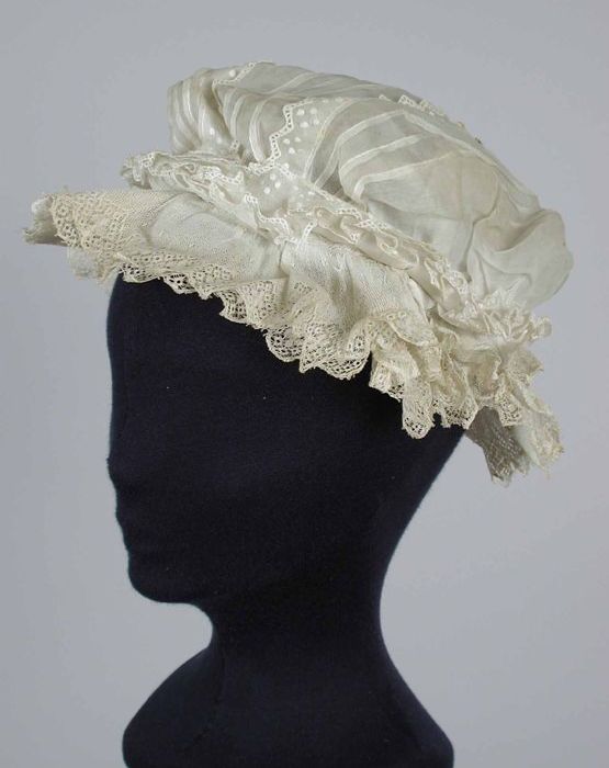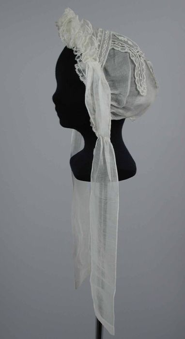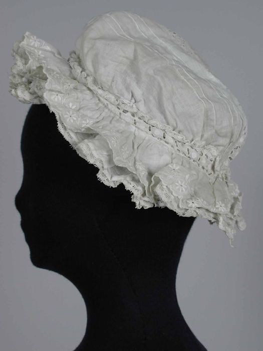 Muts van fijn wit linnen, kantrand rondom en korte s...