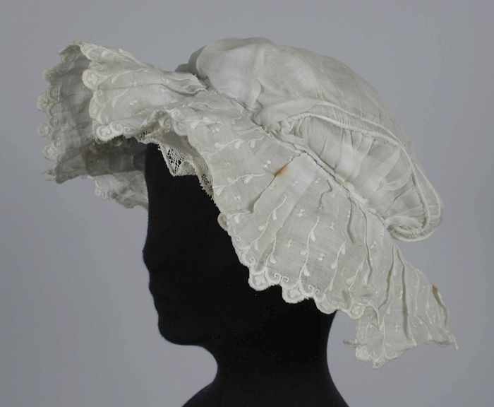 Boudoirmuts van wit glasbatist, ingerimpelde delen o...