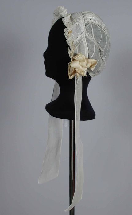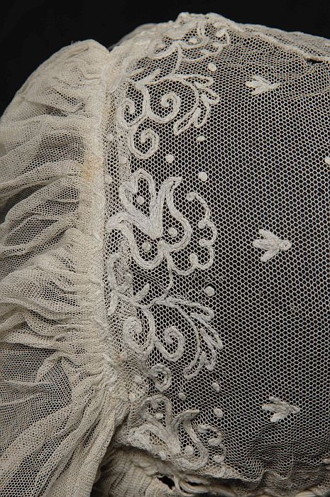 Boudoirmuts van wit linnen, broderie tussenzetsel en...