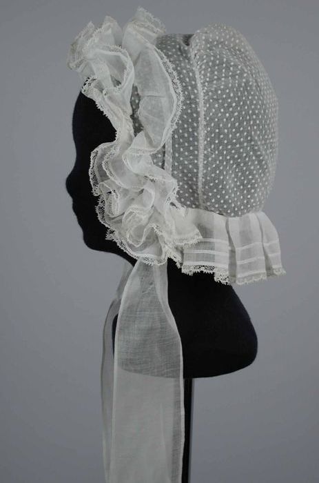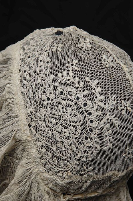 Boudoirmuts van wit batist met plumetis borduursel, ...