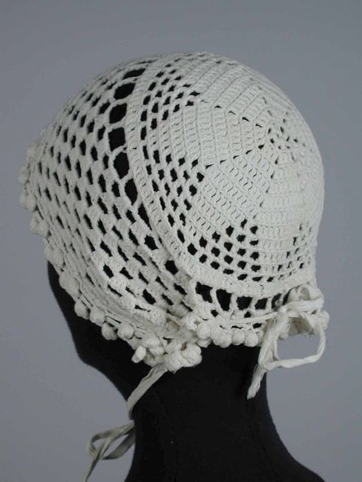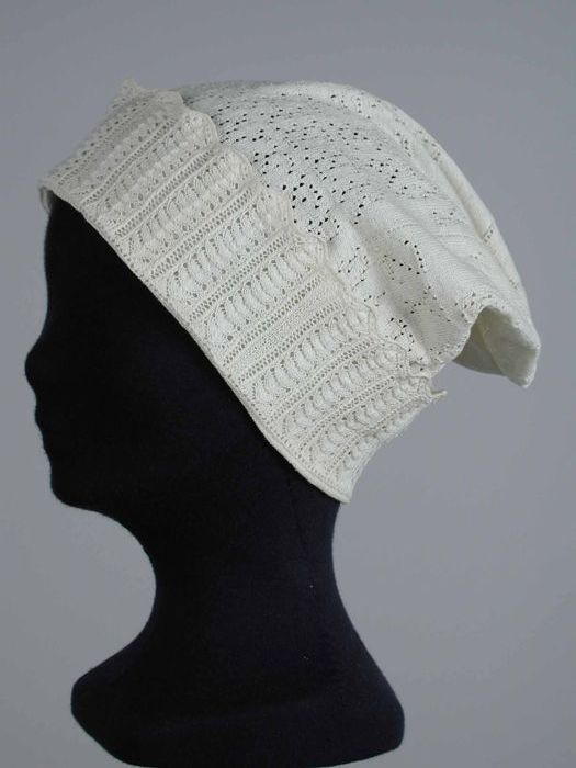 Slaapmuts gebreid van fijn wit katoen, ajour stervor...